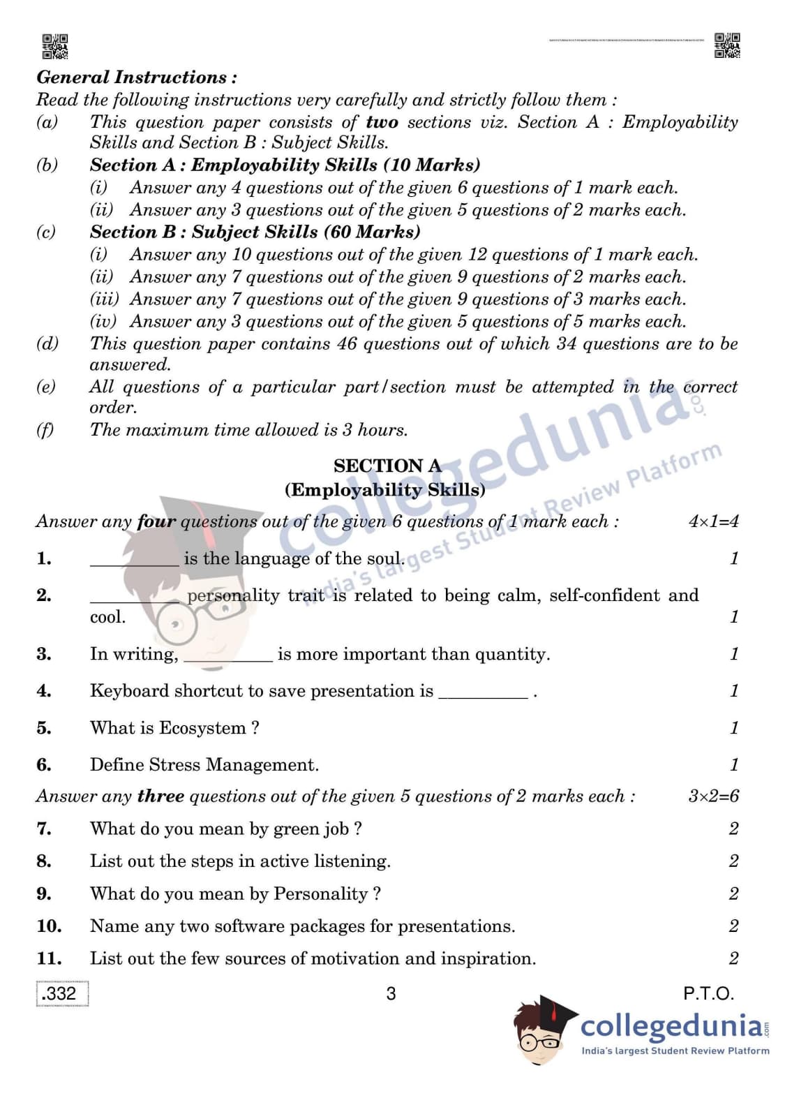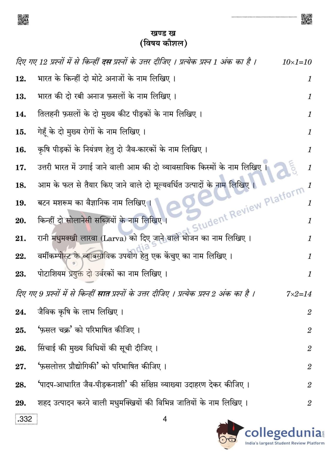 CBSE Class 12 Agriculture Question Paper 2020 with Answer Key Set 4 is available for download. The exam was conducted by the Central Board of Secondary Education on February 17, 2020 in the Morning Session 10:30 AM to 1:30 PM. The medium of paper was English & Hindi. The question paper comprised a total of 46 questions divided among 2 sections.