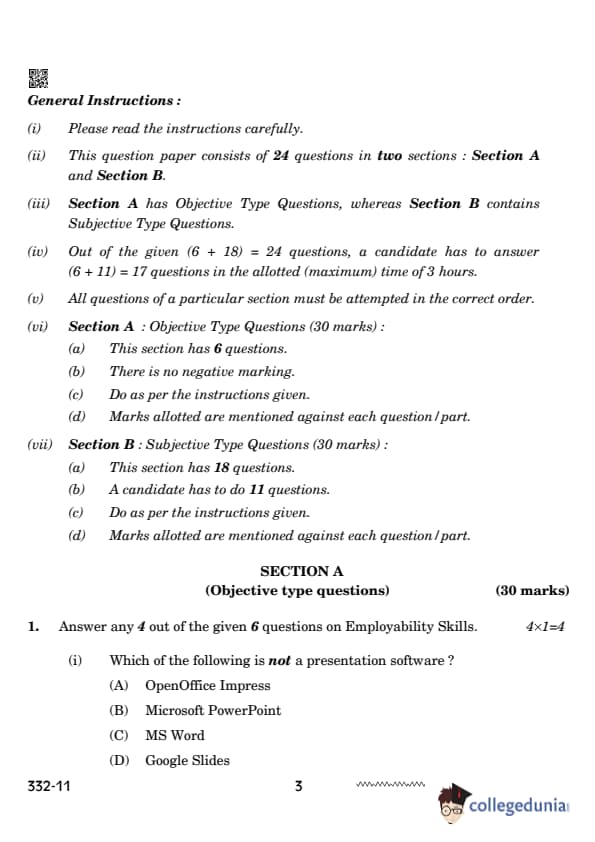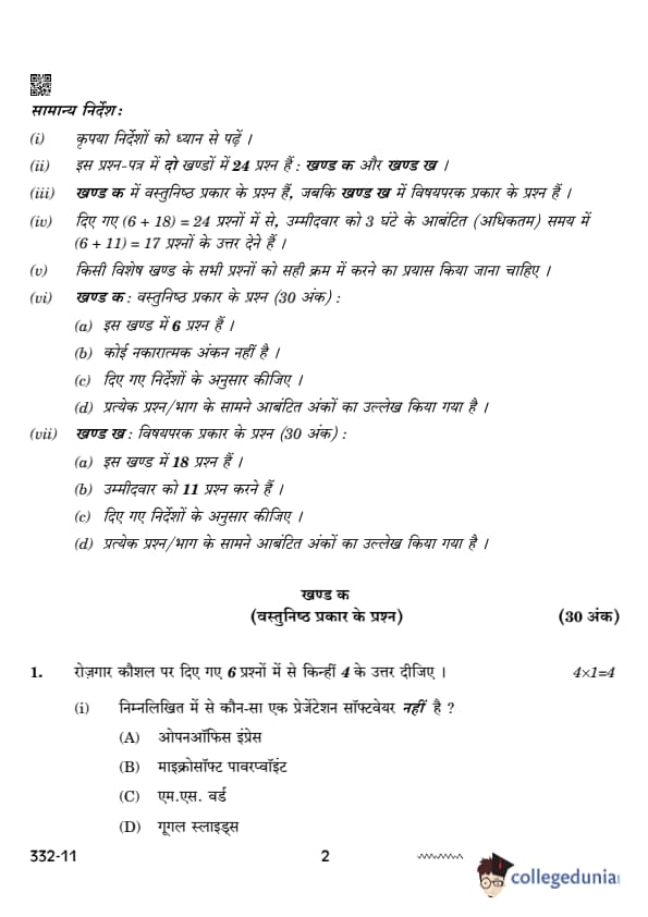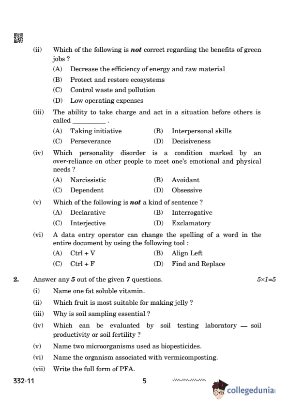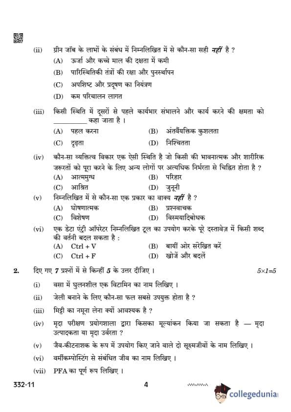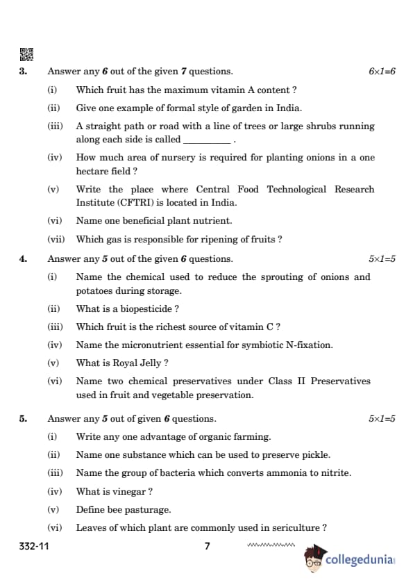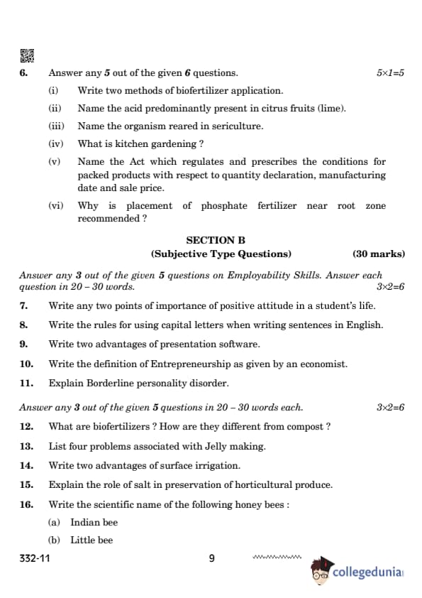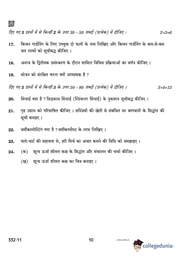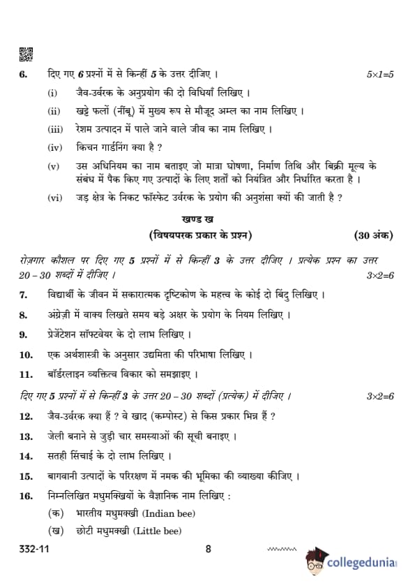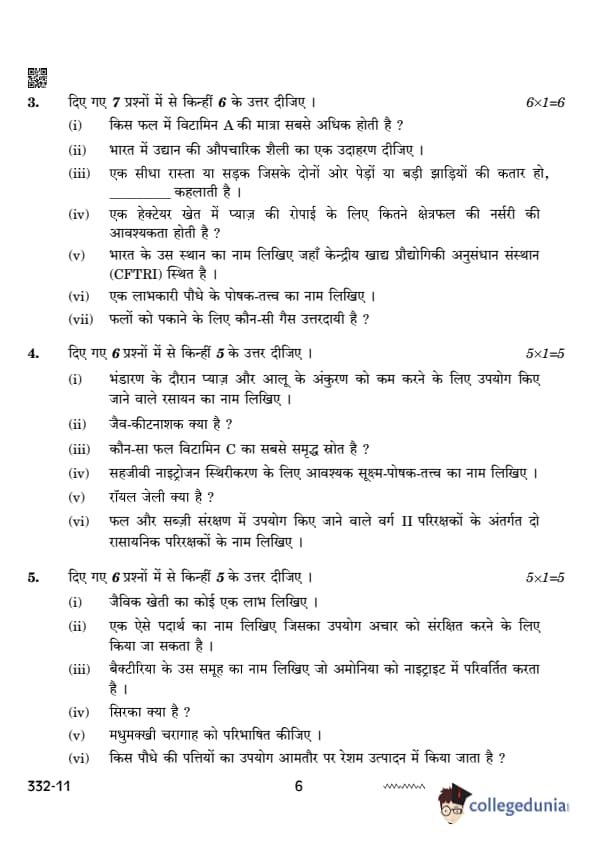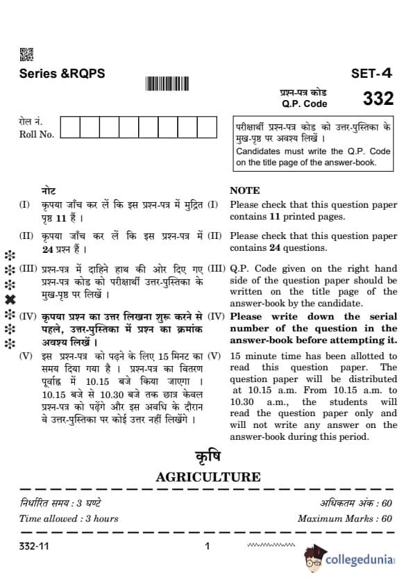 CBSE Class 12 Agriculture Set 4 Question Paper PDF (332) is now available for download. CBSE conducted the Class 12 Agriculture examination on February 26, 2024 from 10:30 AM to 1:30 PM. The question paper consists of 21 questions carrying a total of 50 marks. Section – A has objective type questions whereas Section – B contains subjective type questions.