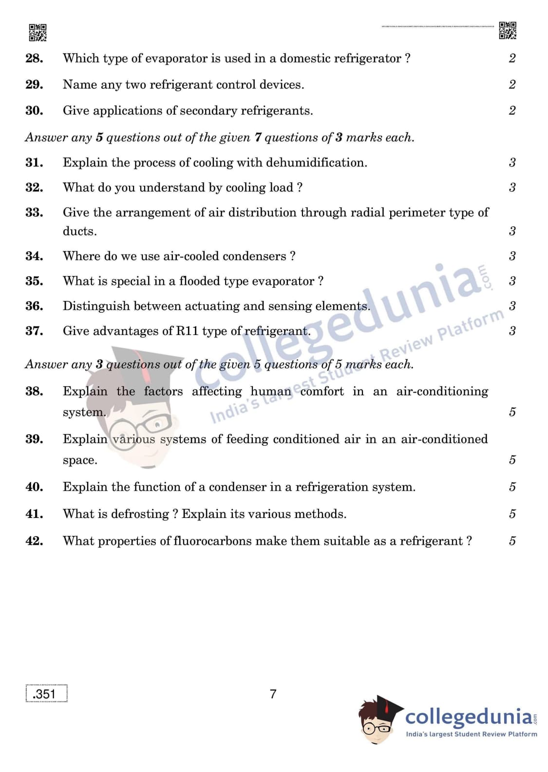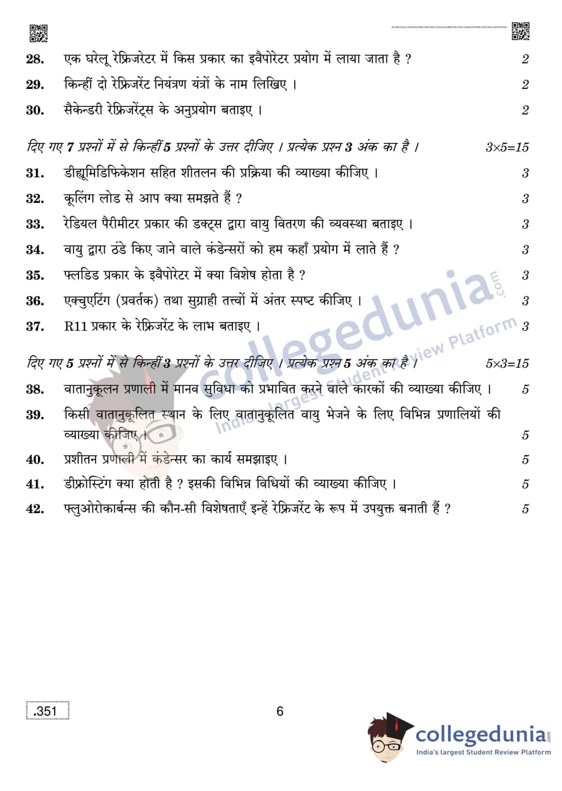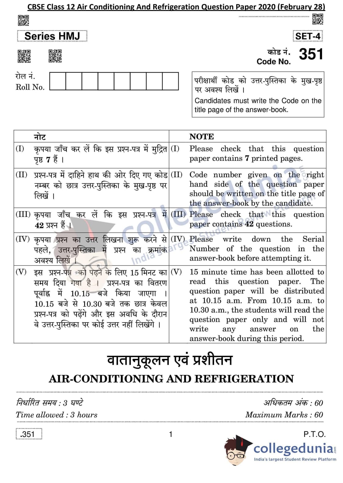 CBSE Class 12 Air Conditioning And Refrigeration Question Paper 2020 with Answer Key (February 28)