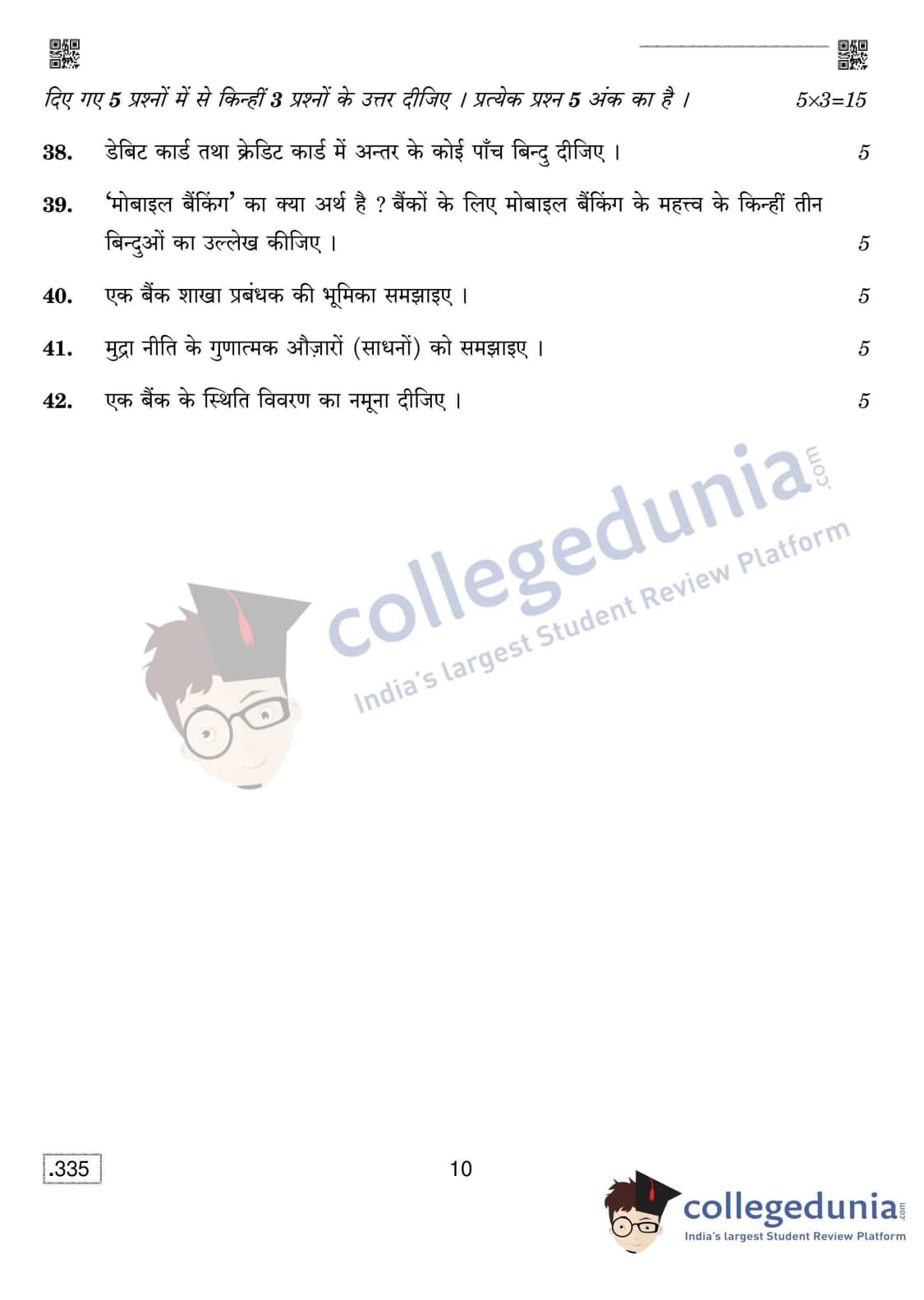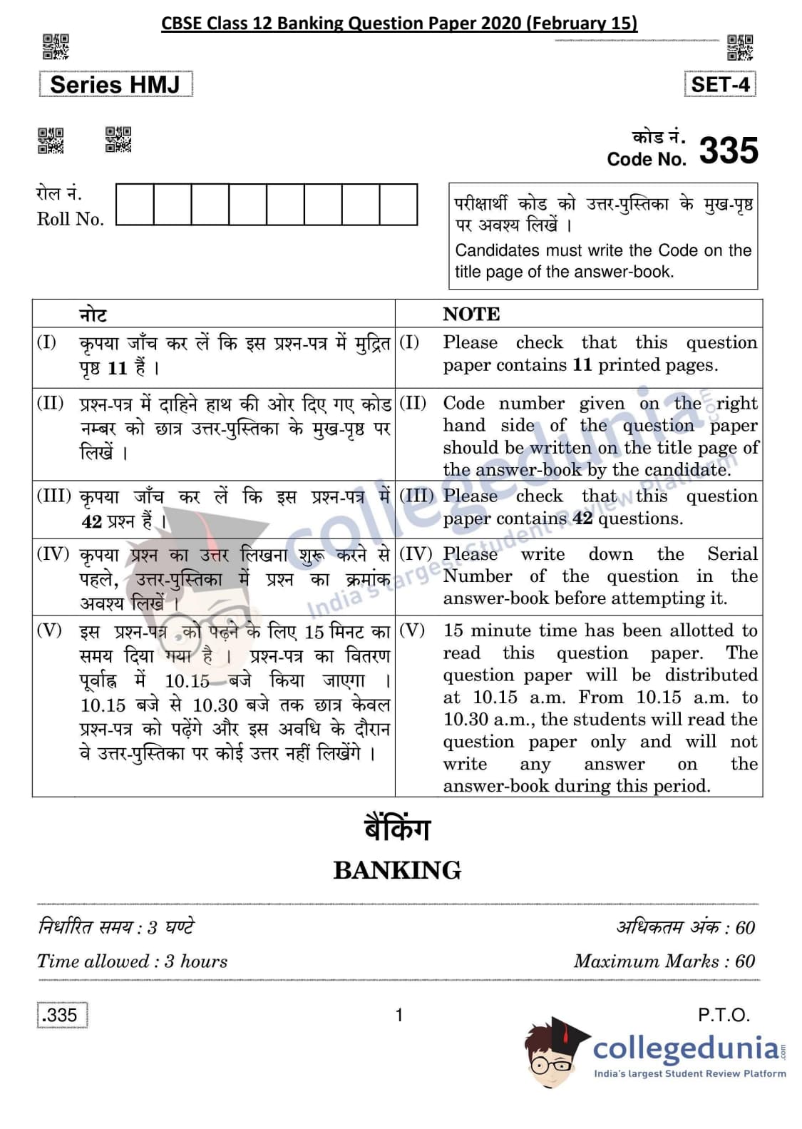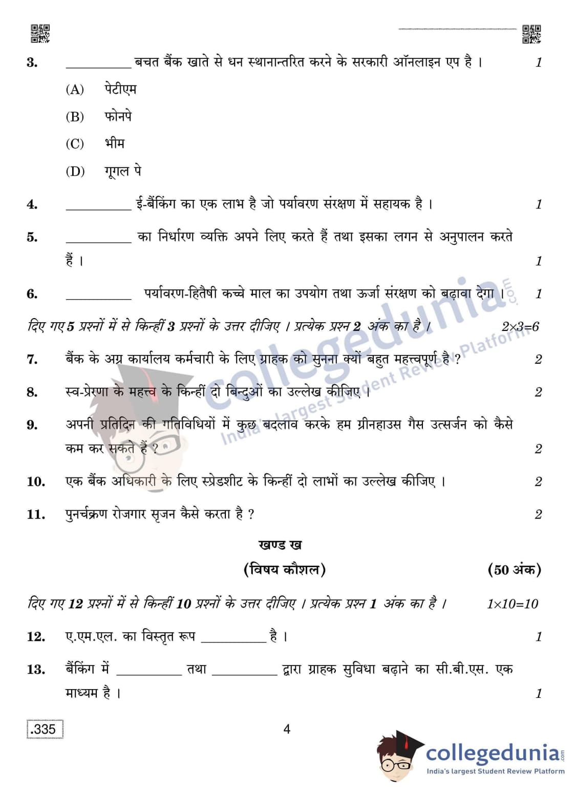 CBSE Class 12 Banking Set 4 Question Paper 2020 with Answer Key (February 15)