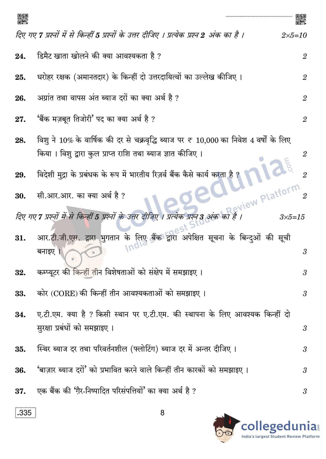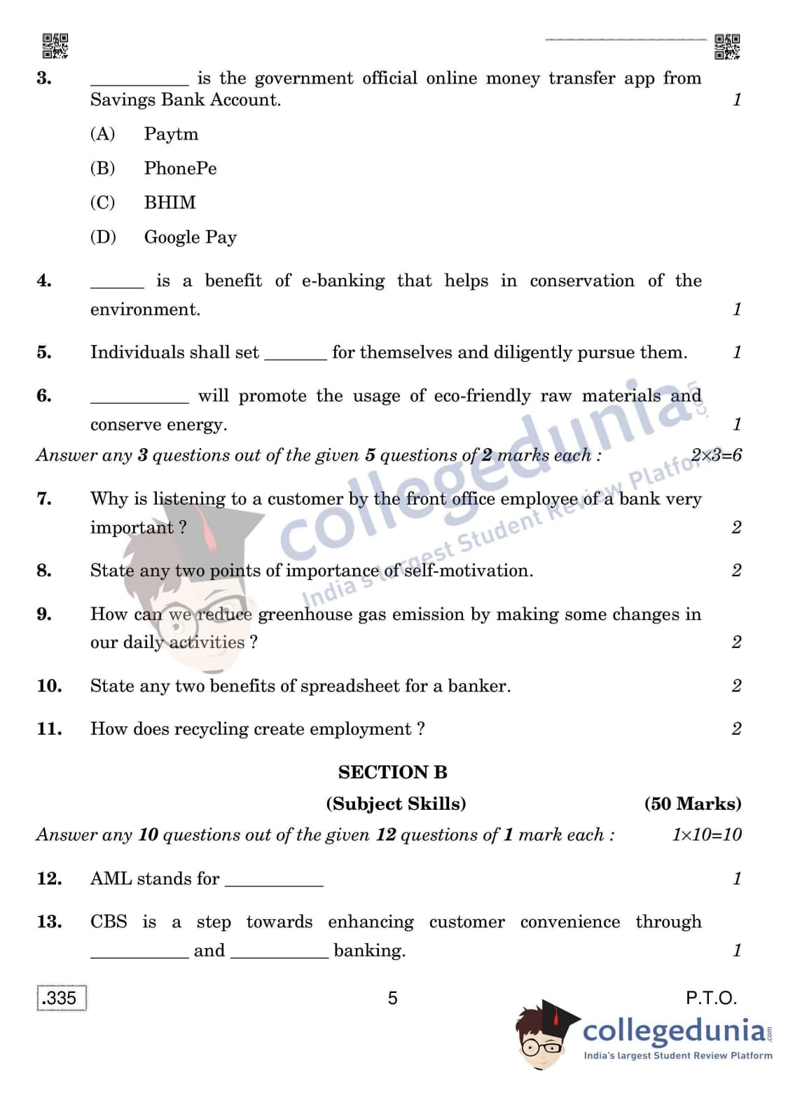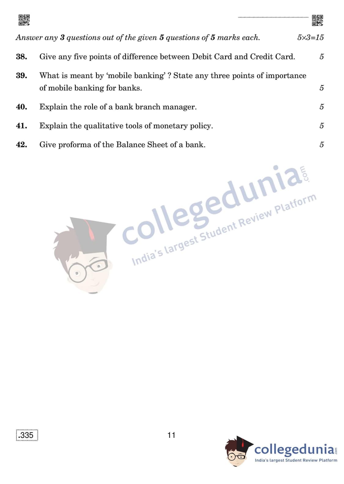 CBSE Class 12 Banking Set 4 Question Paper 2020 with Answer Key (February 15)