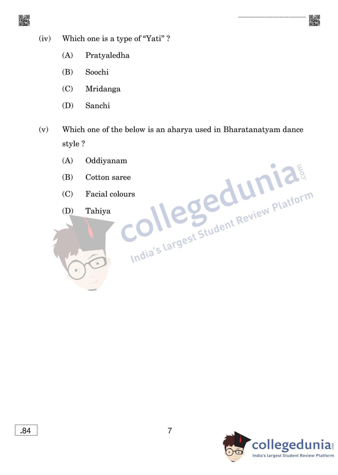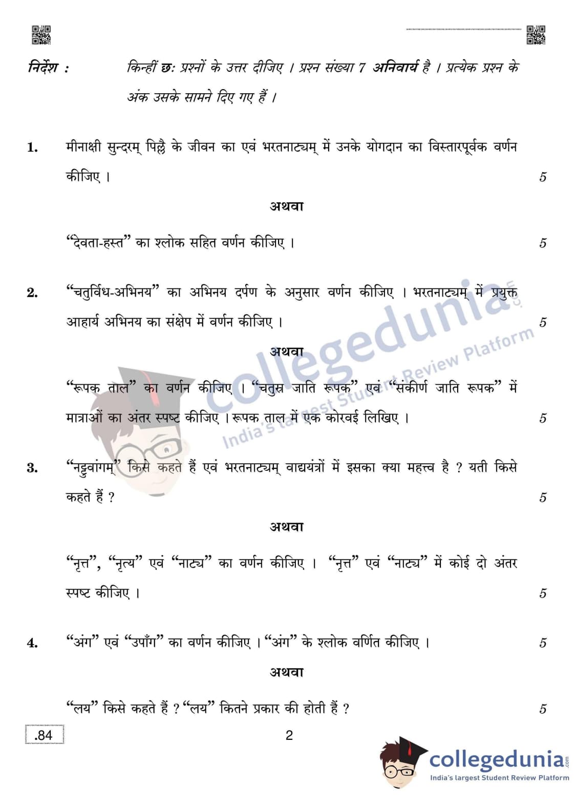 CBSE Class 12 Bharatanatyam Dance (Theory) Question Paper 2020 with Answer Key