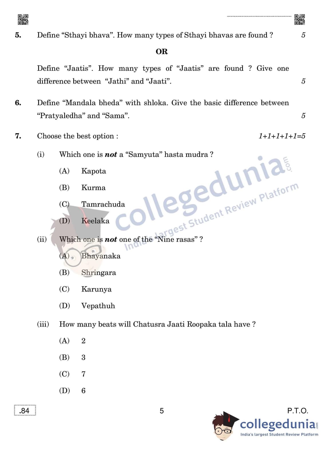 | CBSE Class 12 Bharatanatyam Dance (Theory) Question Paper 2020 PDF | CBSE Class 12 Bharatanatyam Dance (Theory) Answer Key 2020 PDF |