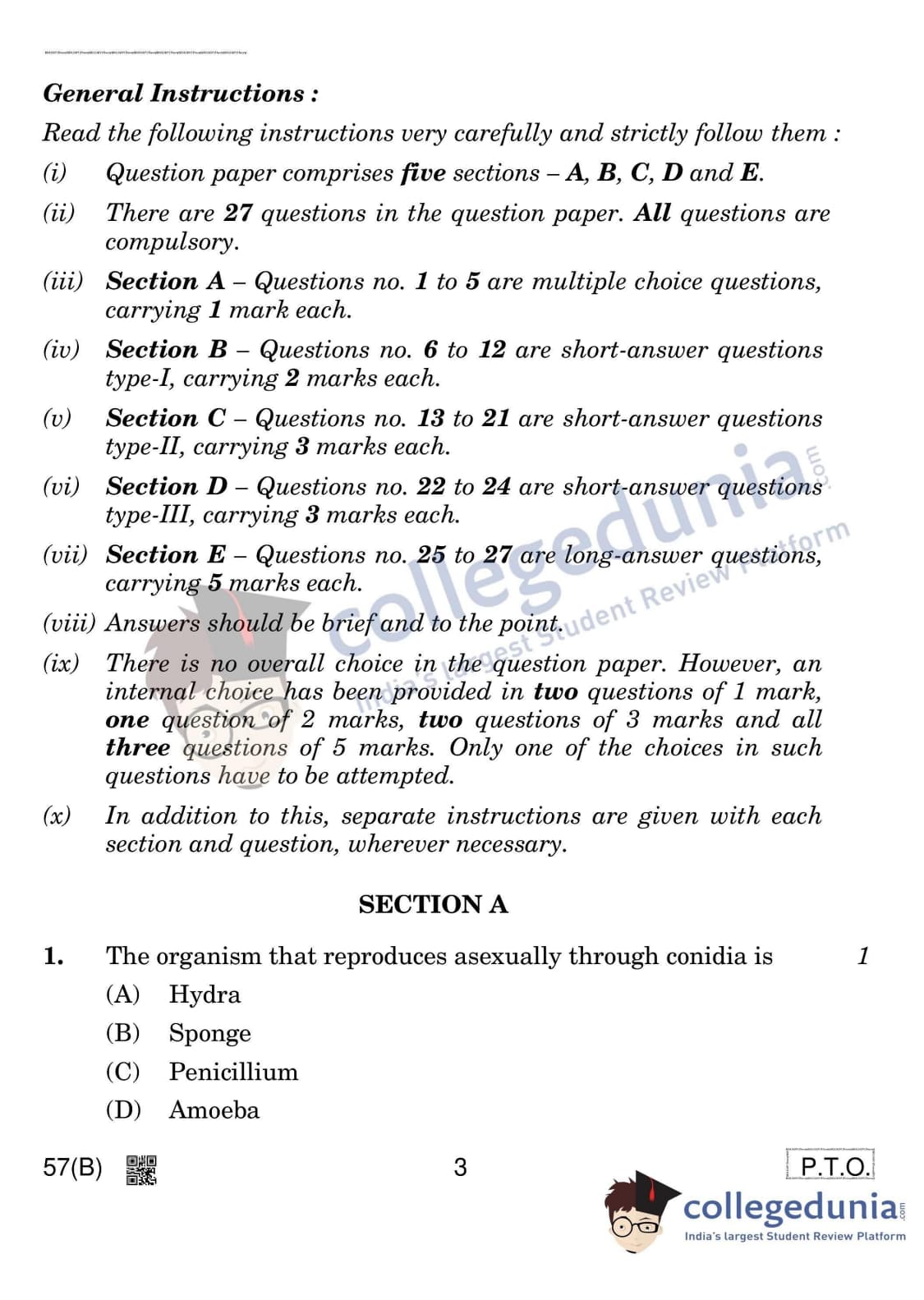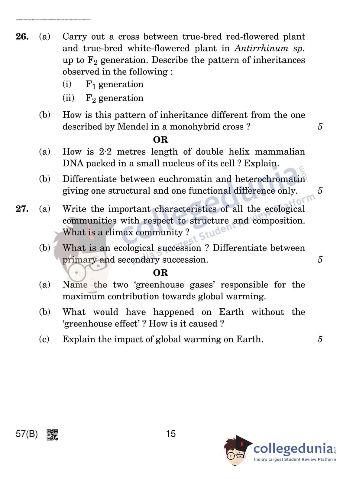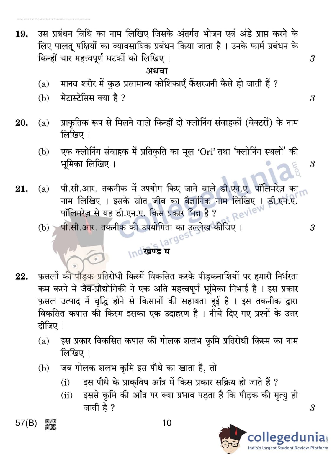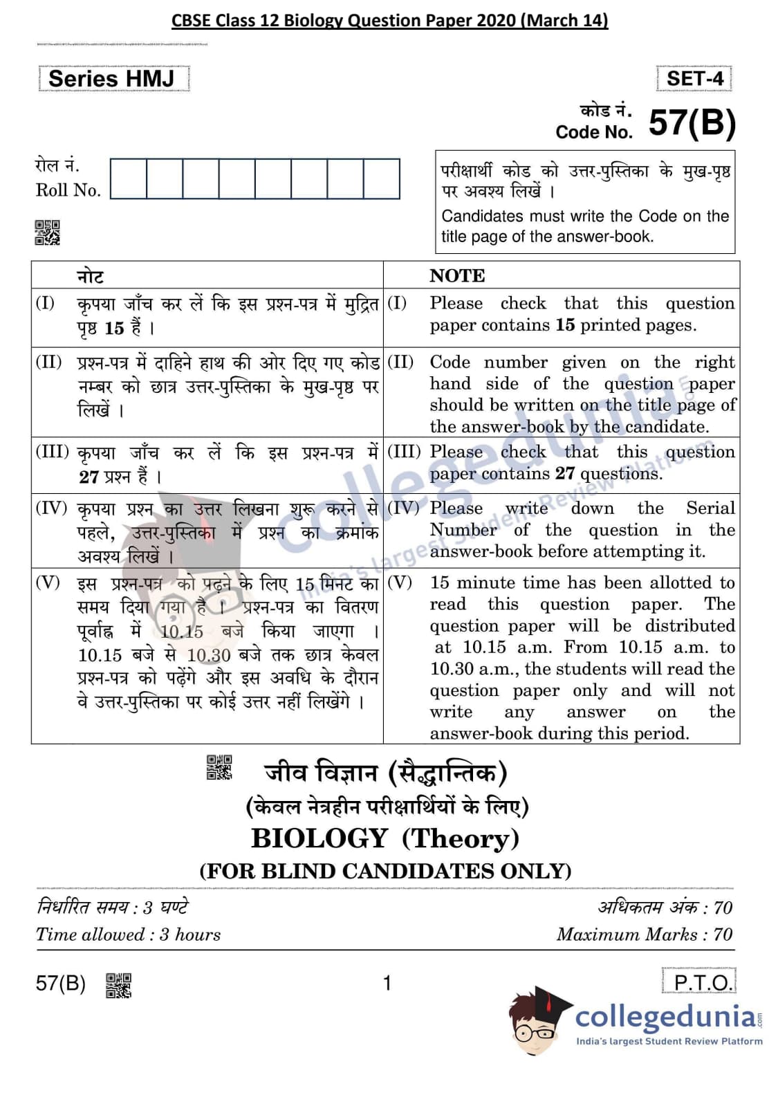 CBSE Class 12 Biology Question Paper 2020 with Answer Key Set 4 is available for download. The exam was conducted by the Central Board of Secondary Education on March 14, 2020 in the Morning Session 10:30 AM to 1:30 PM. The medium of paper was English & Hindi. In terms of difficulty level, CBSE Class 12 Biology paper was of Moderate level. The question paper comprised a total of 27 questions divided among 5 sections.