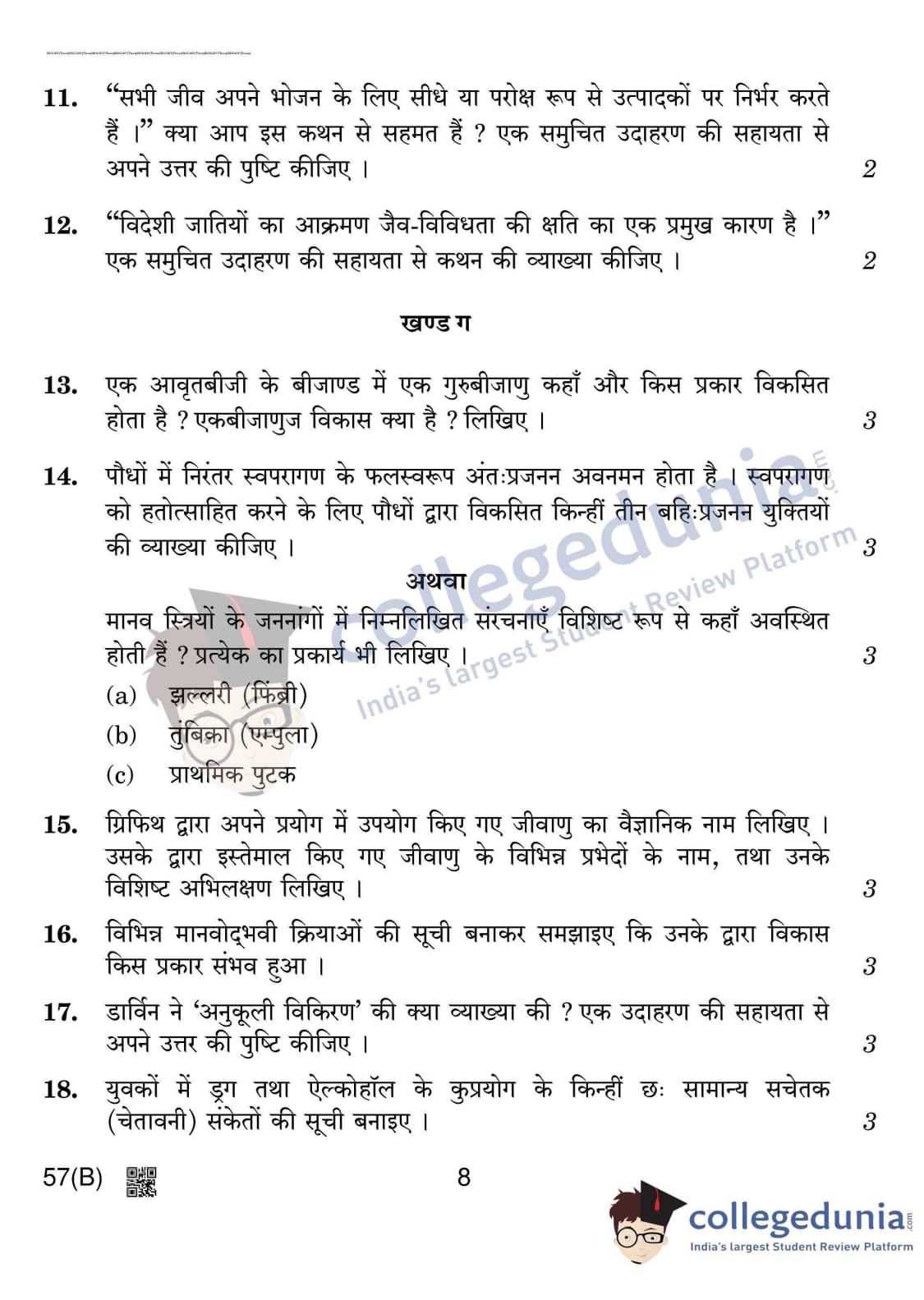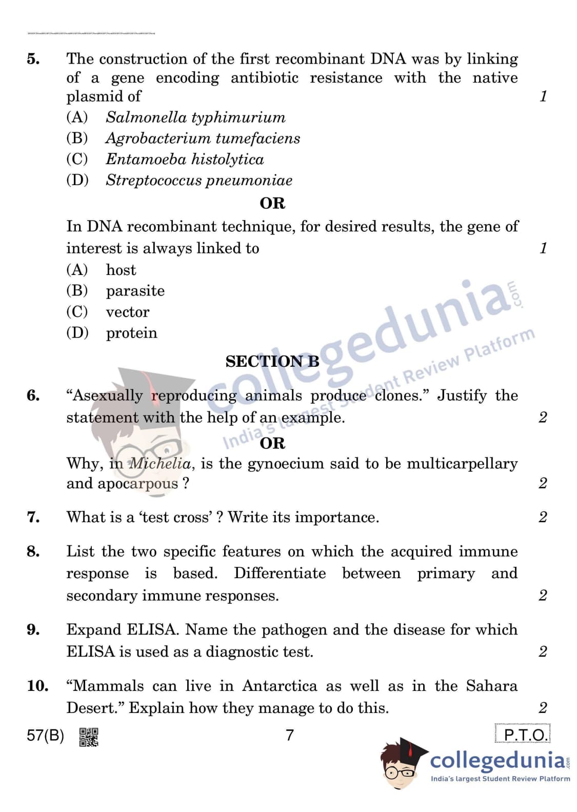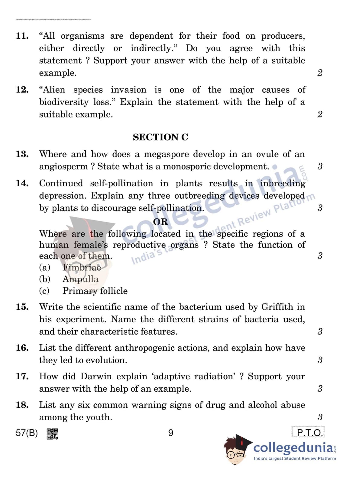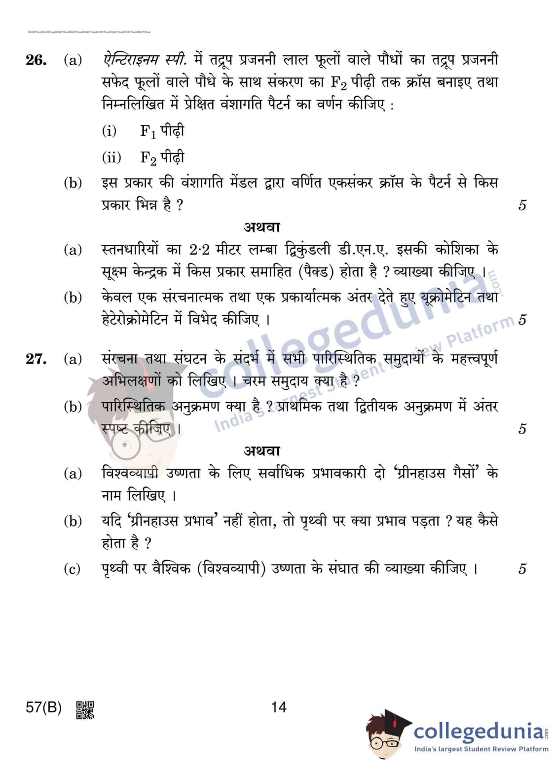 CBSE Class 12 Biology Question Paper 2020 with Answer Key (March 14)
