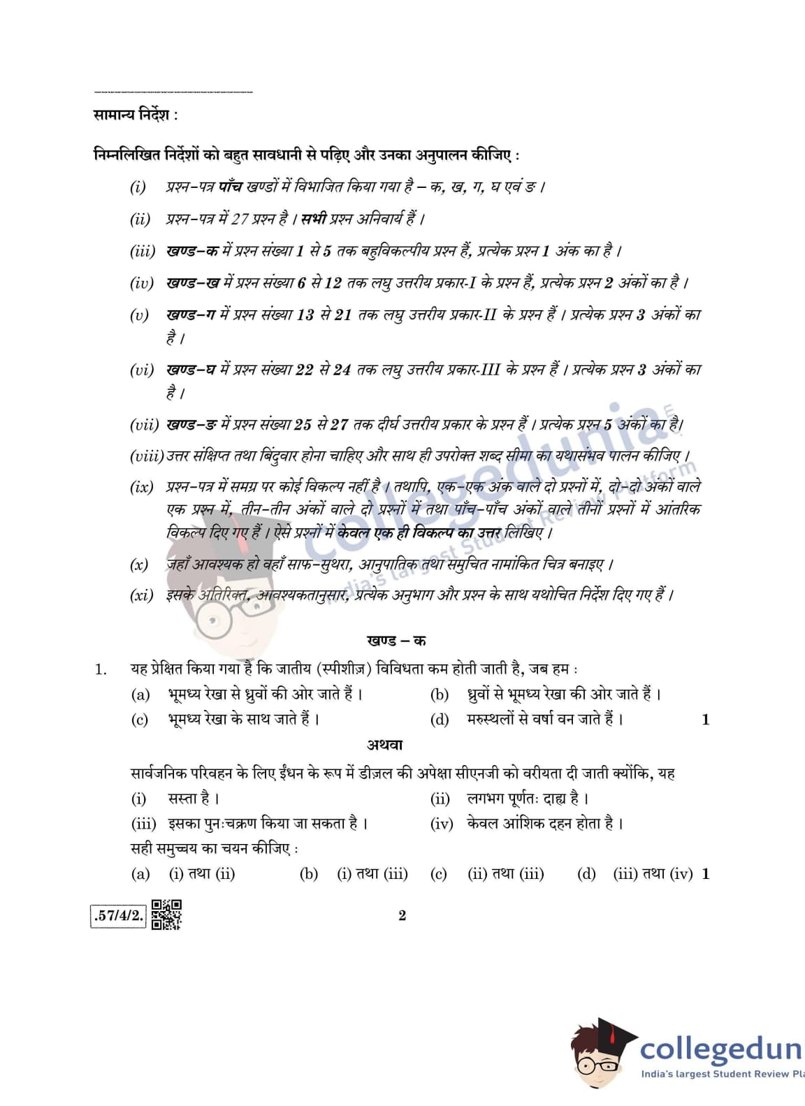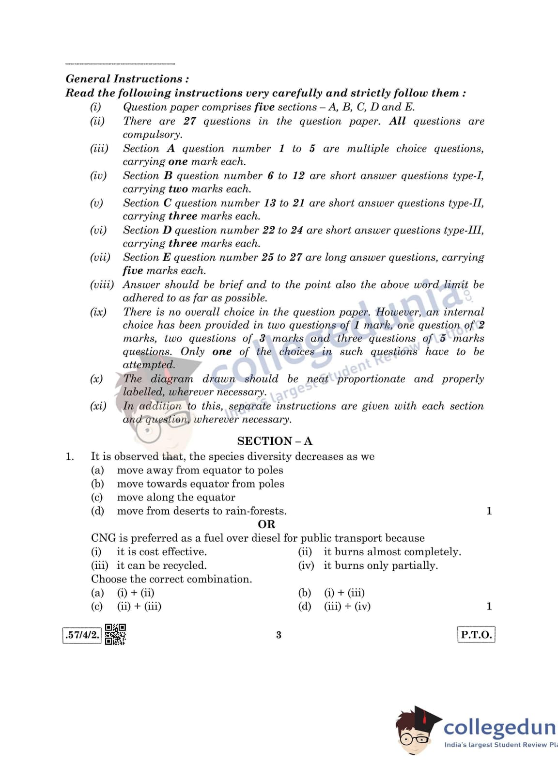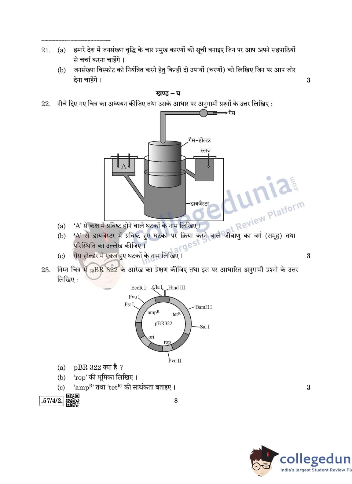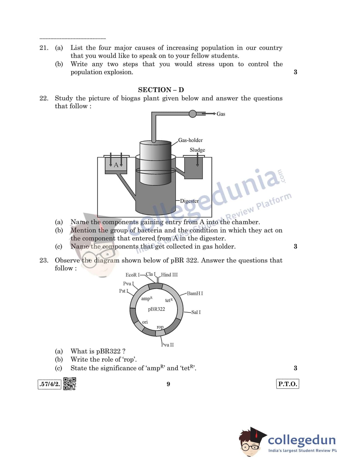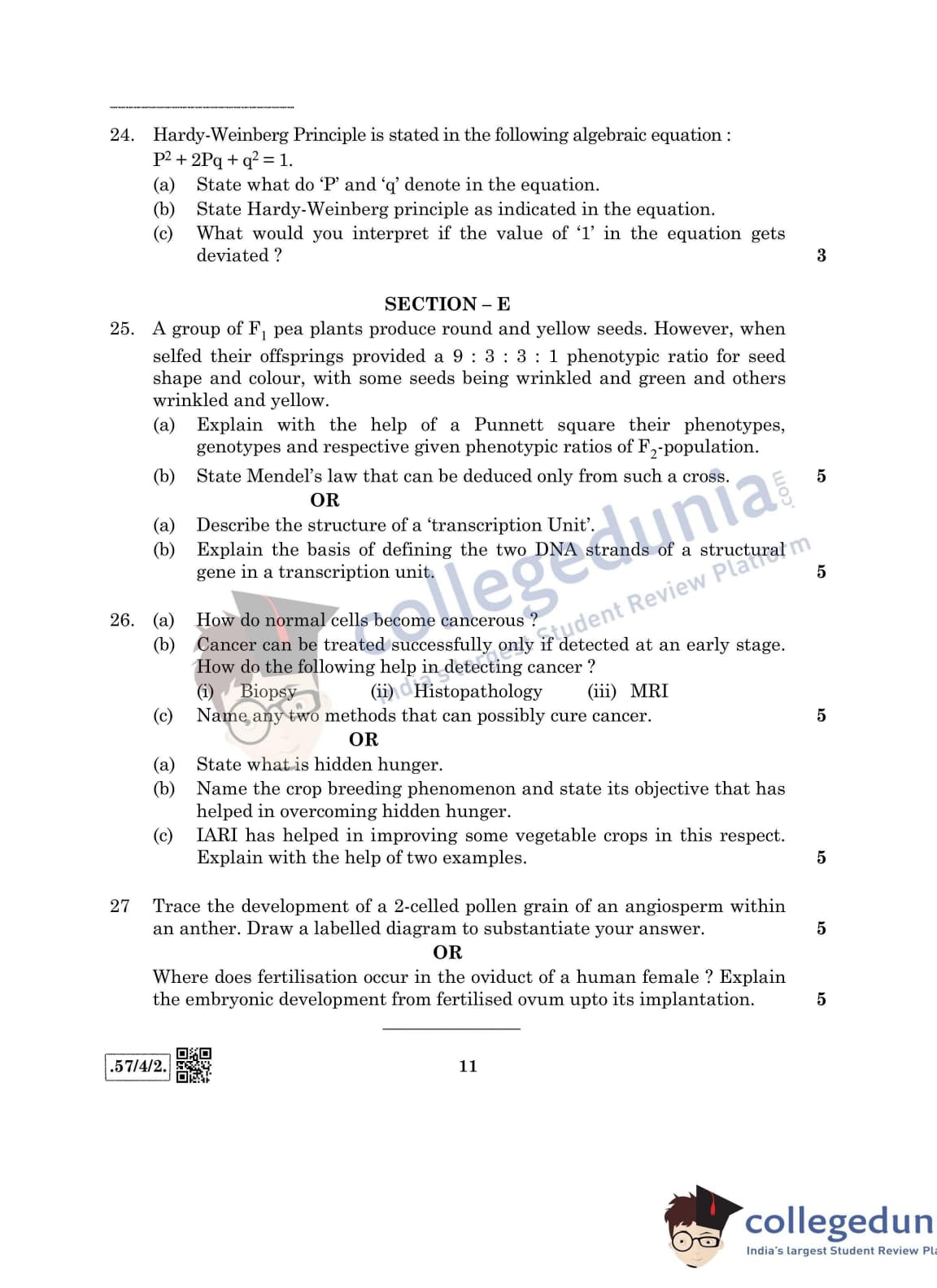 CBSE Class 12 Biology Question Paper 2020 with Answer Key Set 2- 57/4/2 is available for download. The exam was conducted by the Central Board of Secondary Education on March 14, 2020 in the Morning Session 10:30 AM to 1:30 PM. The medium of paper was English & Hindi. In terms of difficulty level, CBSE Class 12 Biology paper was of Moderate level. The question paper comprised a total of 27 questions divided among 5 sections.