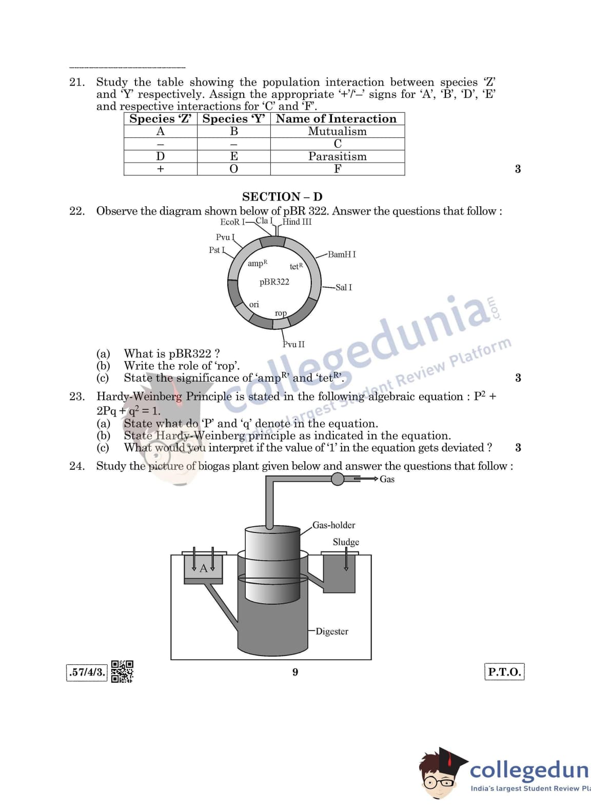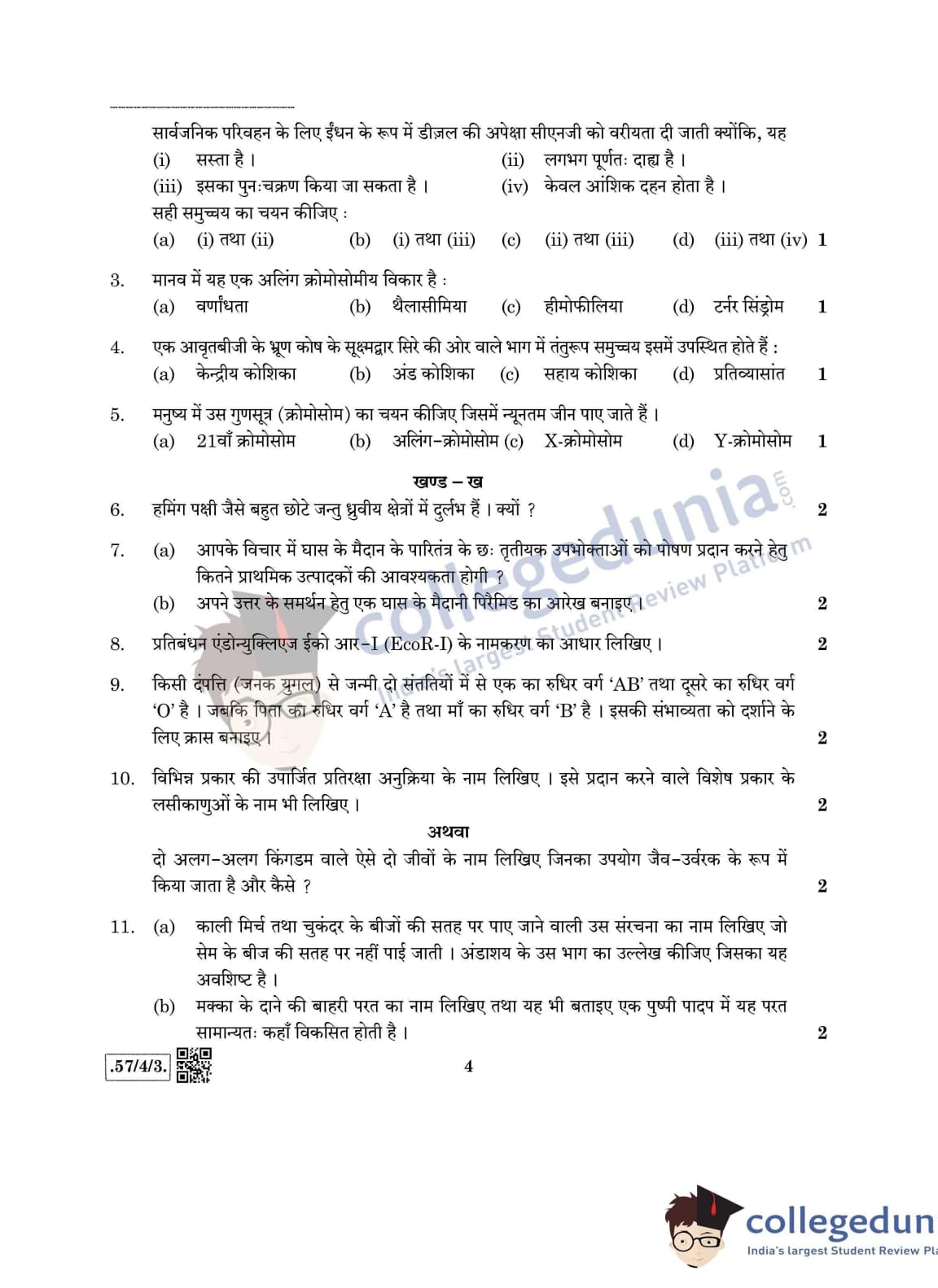 CBSE Class 12 Biology Set 3- 57/4/3 Question Paper 2020 with Answer Key (March 14)