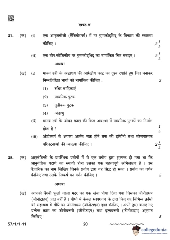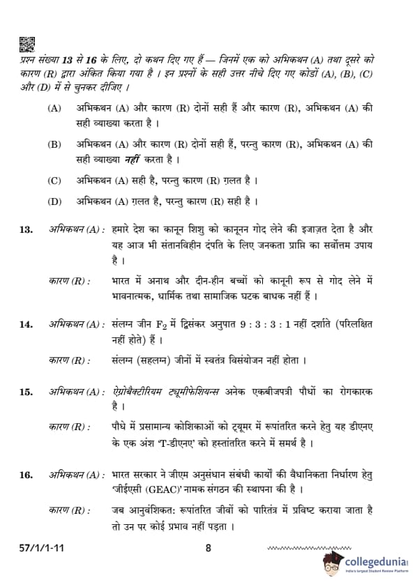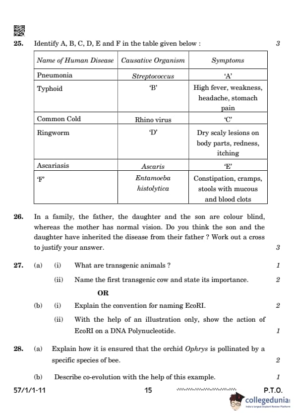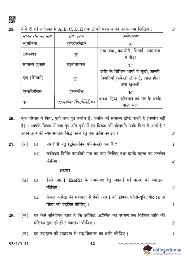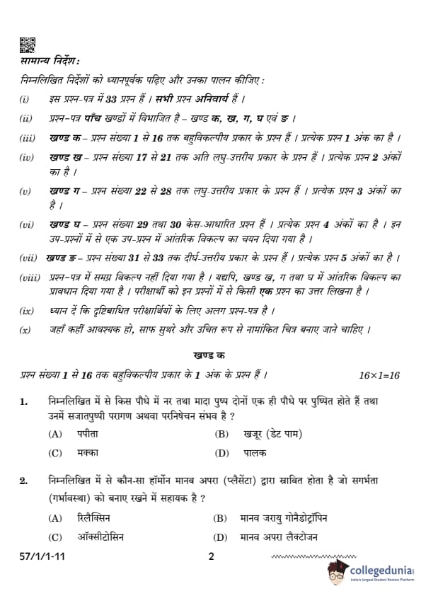 | CBSE Class 12 2024 Biology Question Paper with Answer Key | Check Solution |