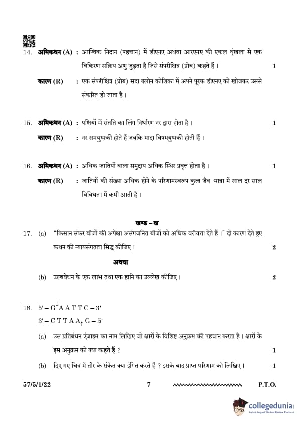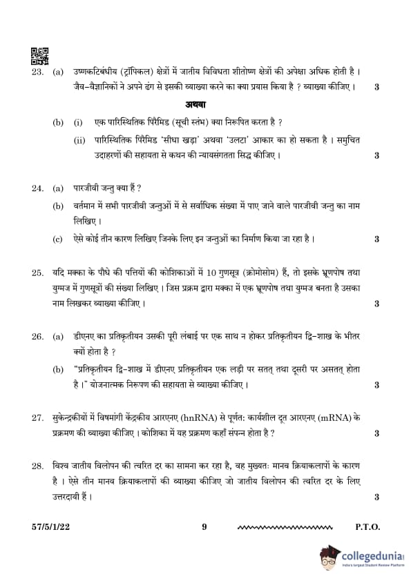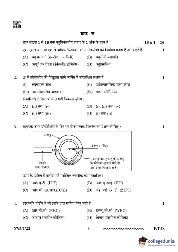 | CBSE Class 12 2024 Biology Question Paper with Answer Key | Check Solution |