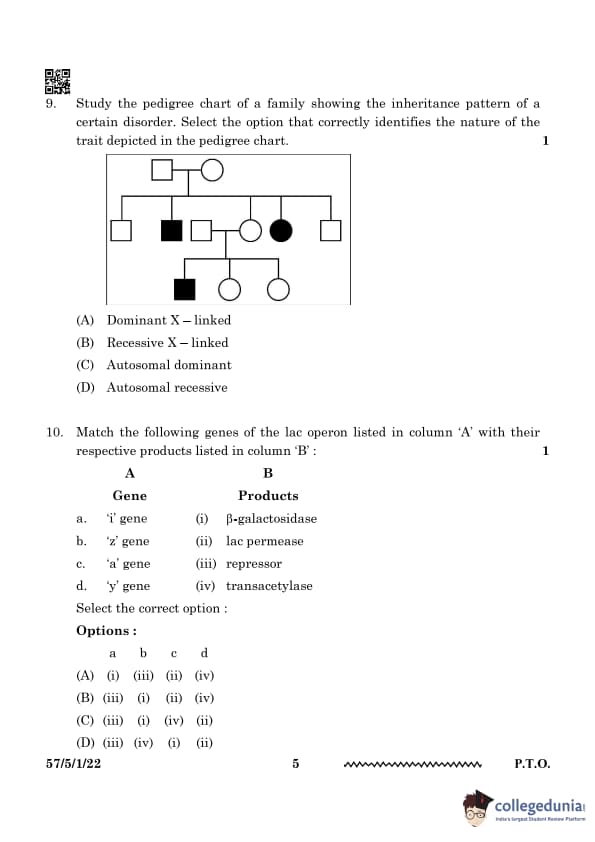CBSE Class 12 Biology Question Paper 2024 (Set 1- 57/5/1) with Answer Key