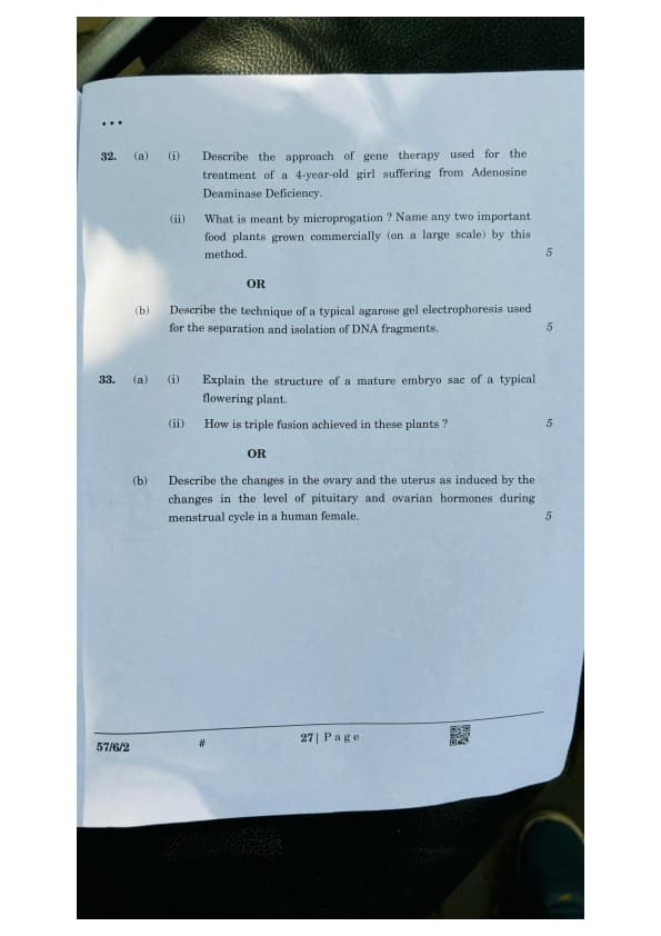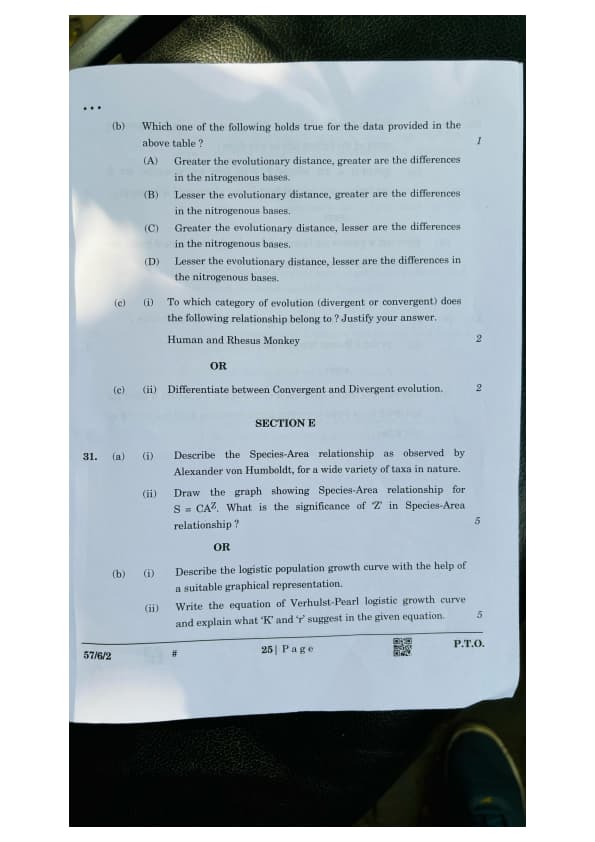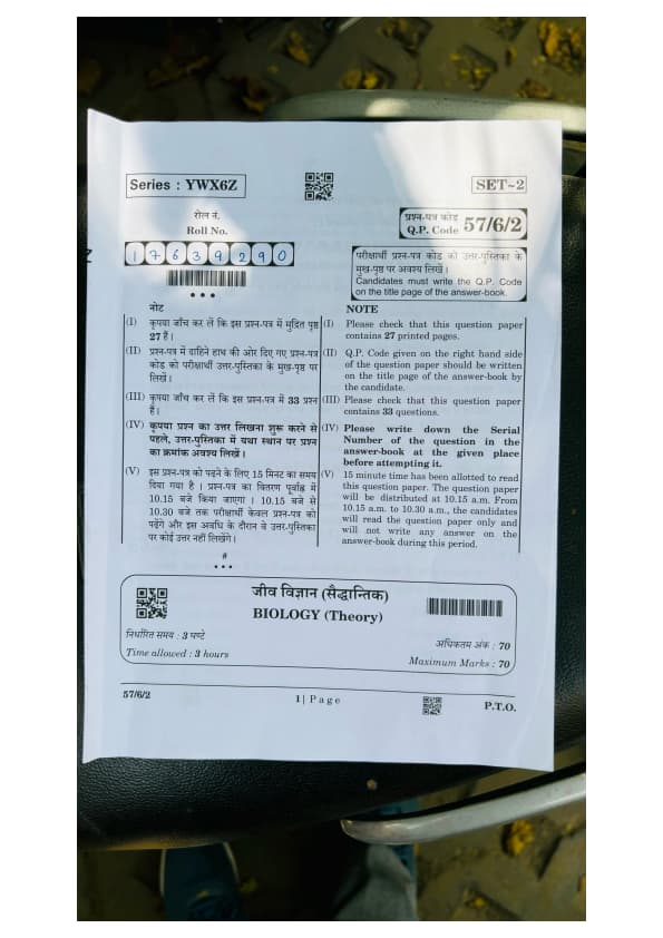 CBSE Class 12 Biology Question Paper 2025 (Set 2- 57/6/2) with Answer Key