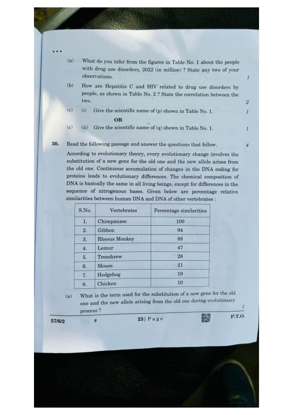 (c) (i) Give the scientific name of (p) shown in Table No. 1. OR (ii) Give the scientific name of (q) shown in Table No. 1.