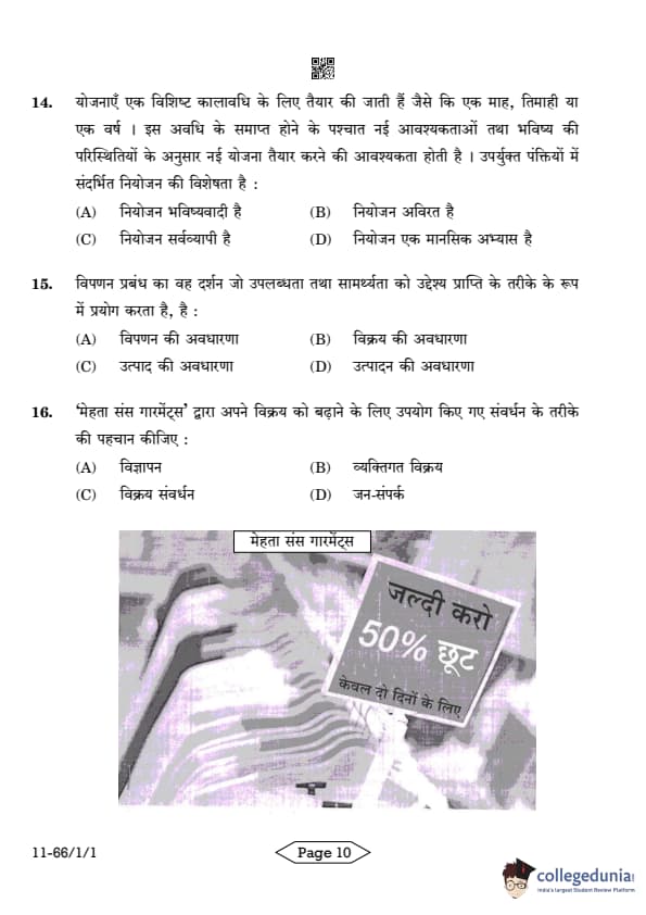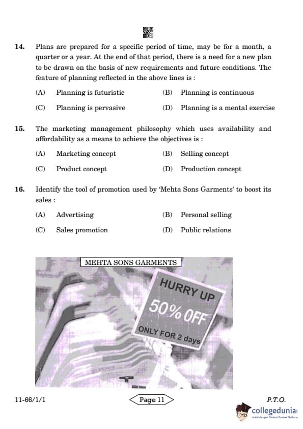 Question 16: Identify the tool of promotion used by 'Mehta Sons Garments' to boost its sales: