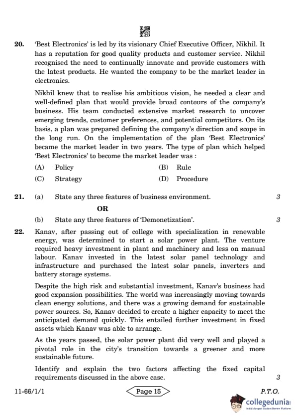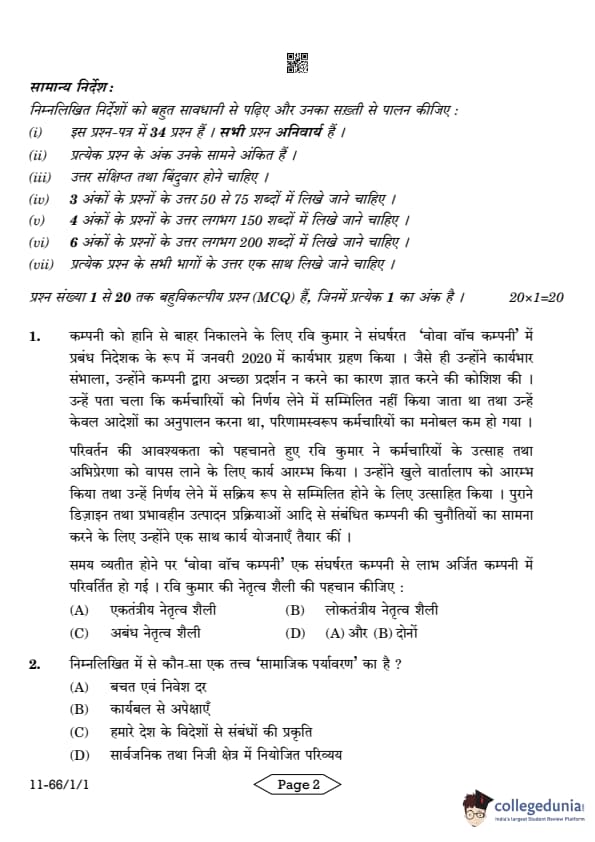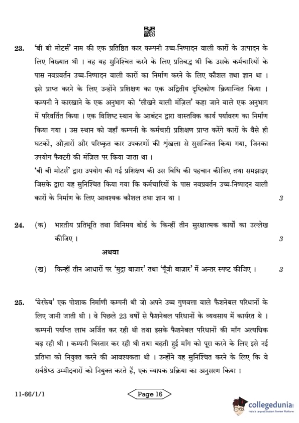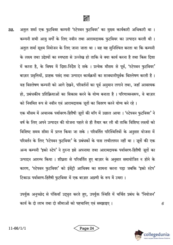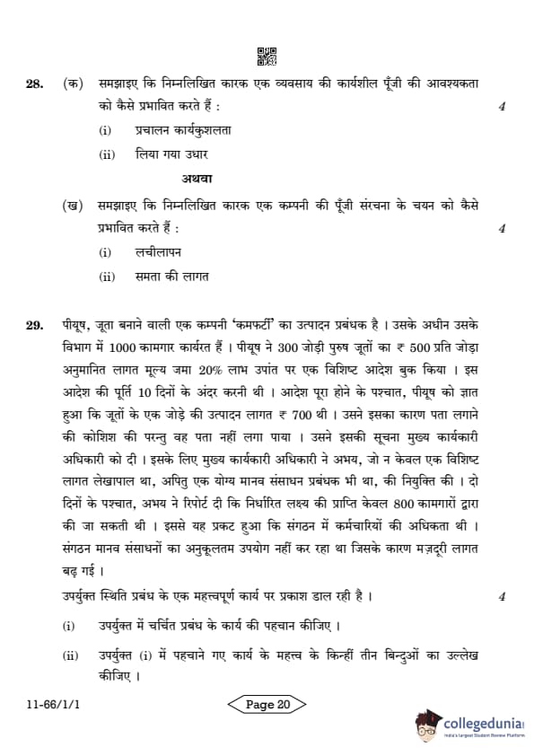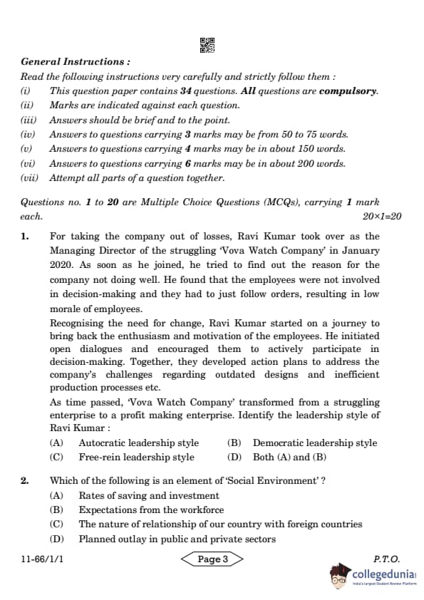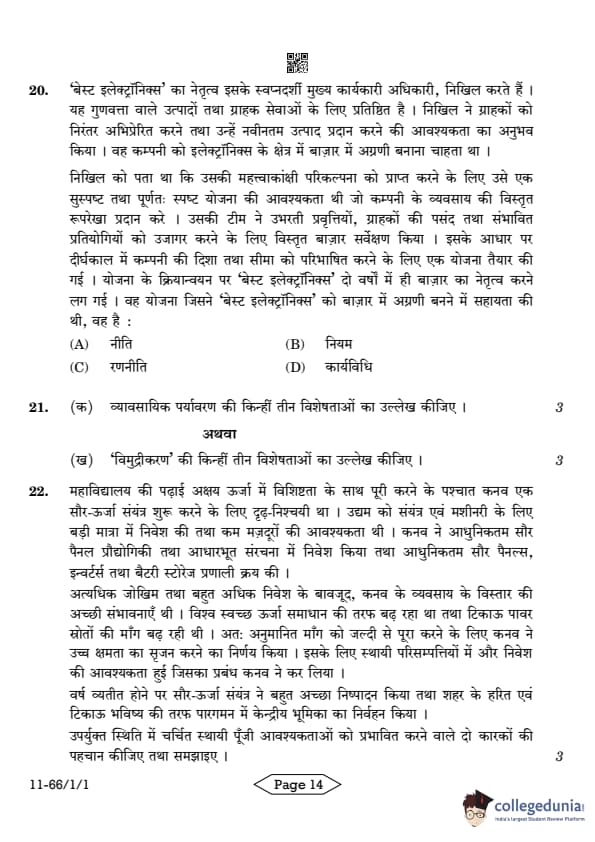 | CBSE Class 12 2024 Business Studies Question Paper with Answer Key | Check Solution |