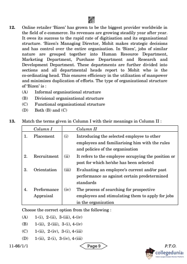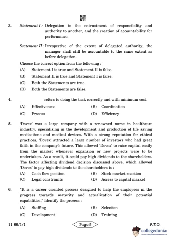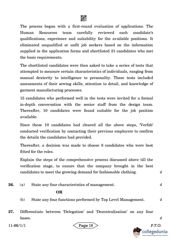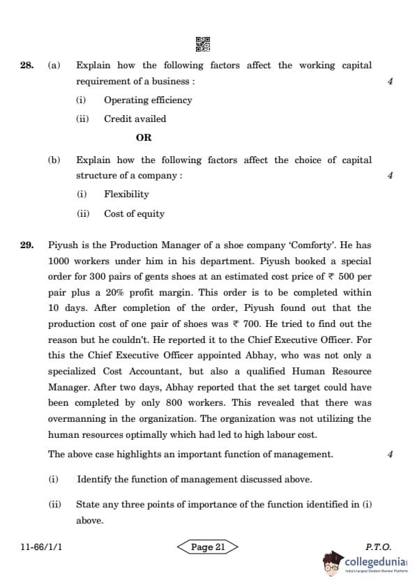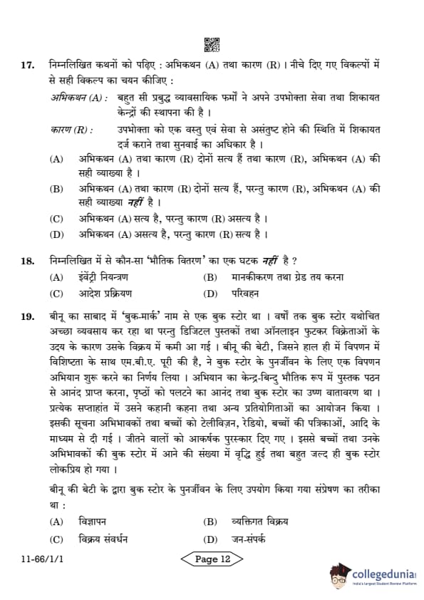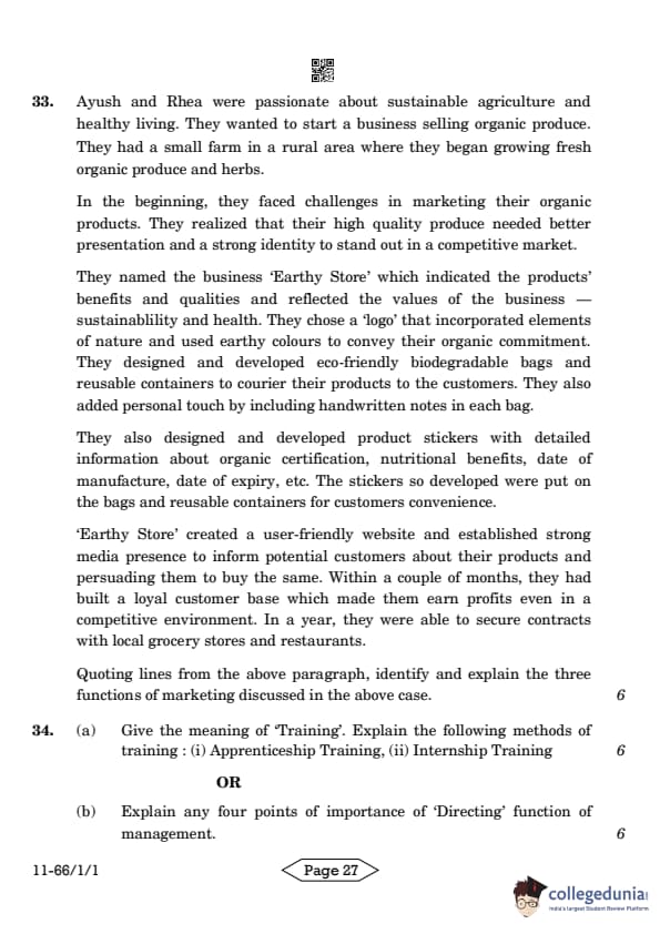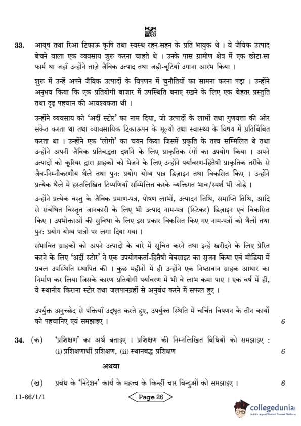 | CBSE Class 12 2024 Business Studies Question Paper with Answer Key | Check Solution |