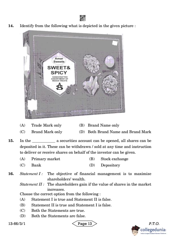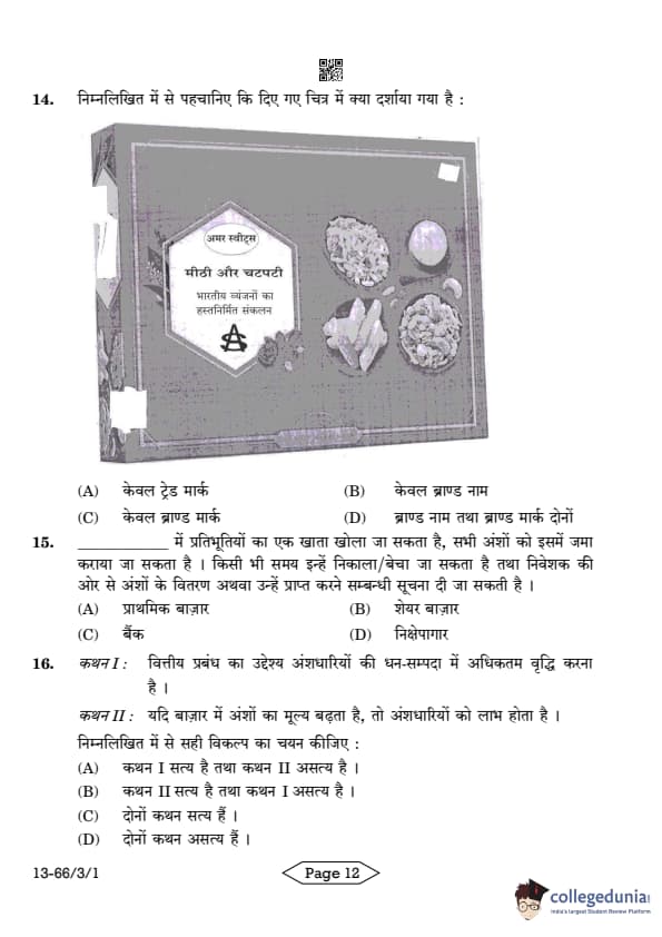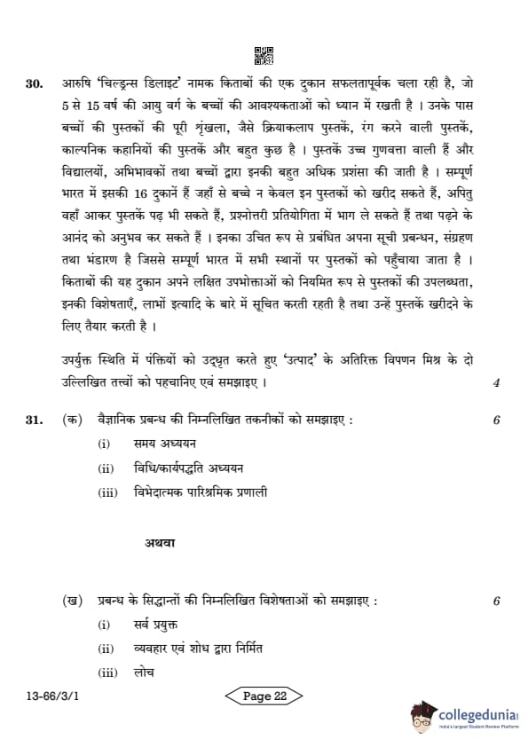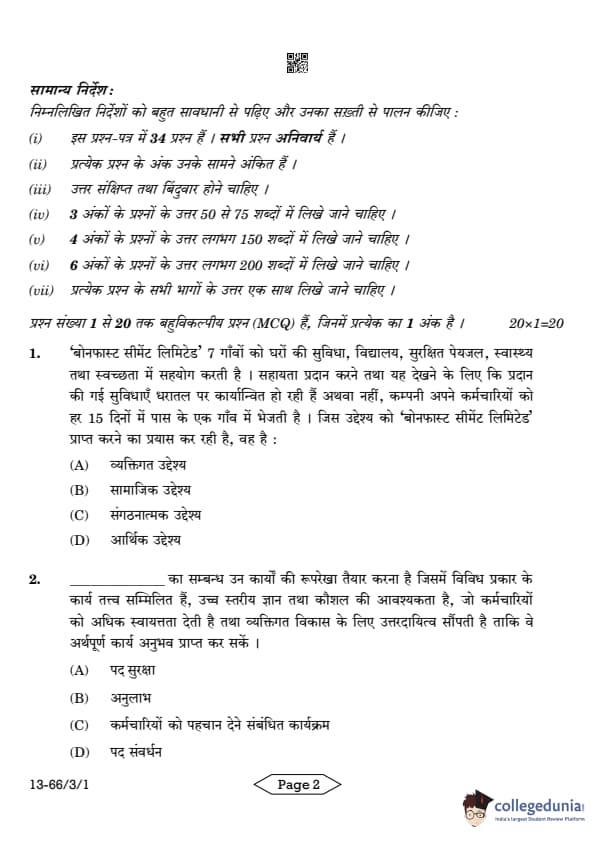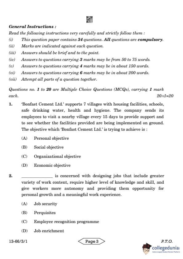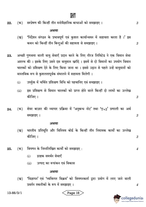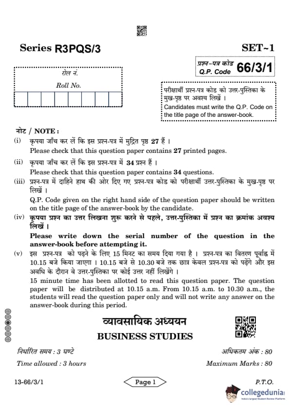 CBSE Class 12 Business Studies Question Paper 2024 PDF (Set 1- 66/3/1) is available for download here. CBSE conducted the Business Studies exam on March 27, 2024 from 10:30 AM to 1:30 PM. The total marks for the theory paper are 80. The question paper will contain 20% MCQ-based questions, 40% competency-based questions, and 40% short and long answer type questions. Candidates can use the link below to download the CBSE Class 12 Business Studies Set 1 Question Paper with detailed solutions.