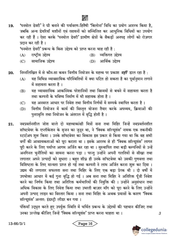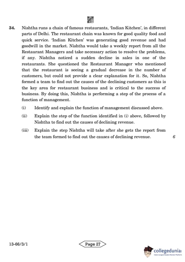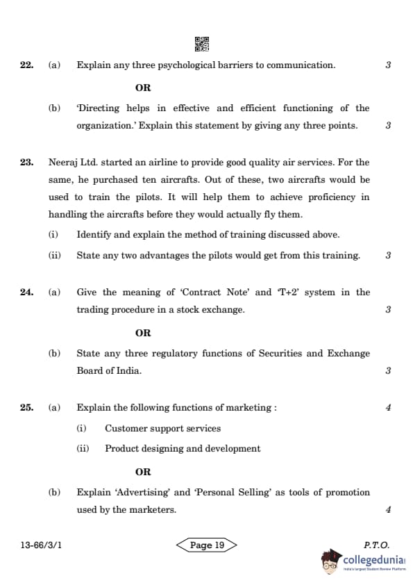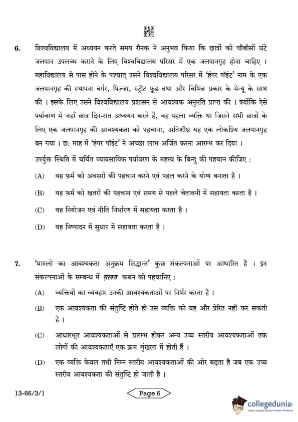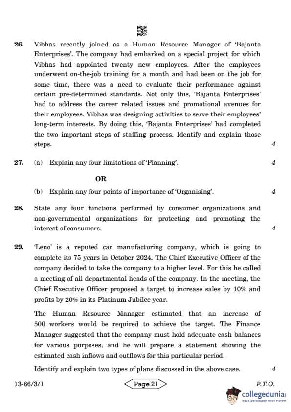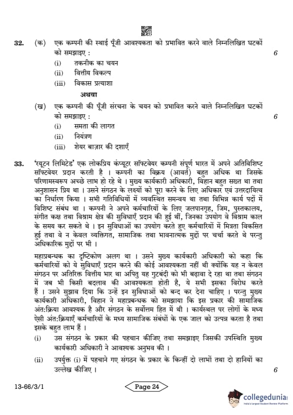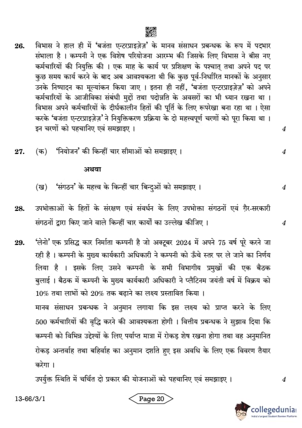 | CBSE Class 12 2024 Business Studies Question Paper with Answer Key | Check Solution |