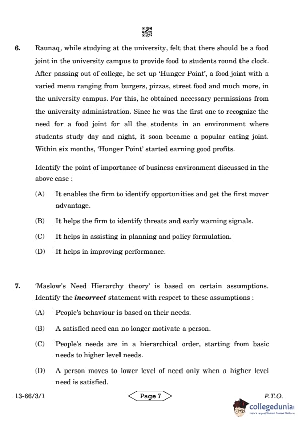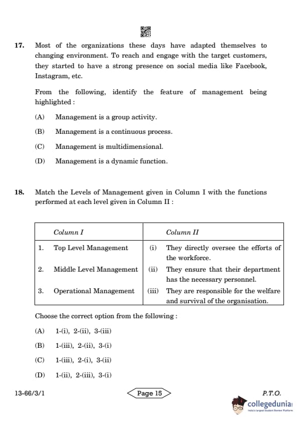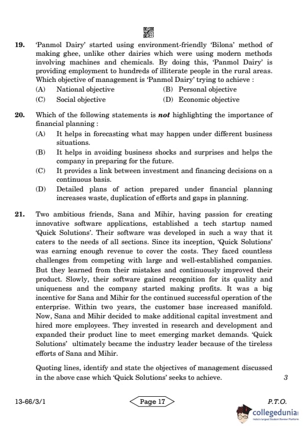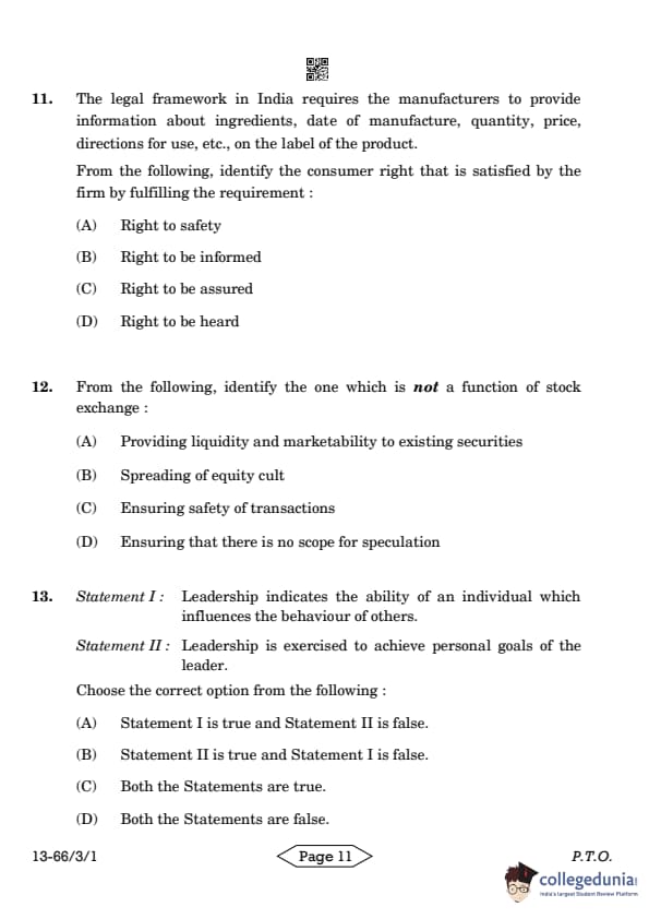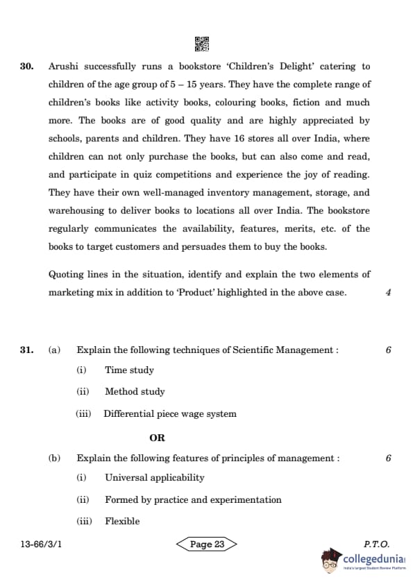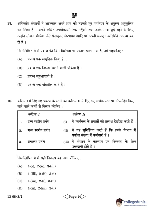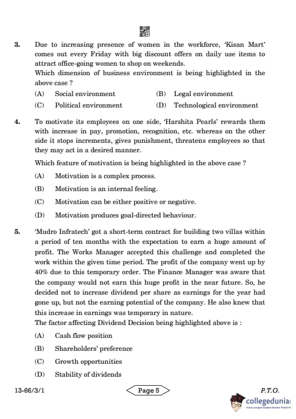 | CBSE Class 12 2024 Business Studies Question Paper with Answer Key | Check Solution |