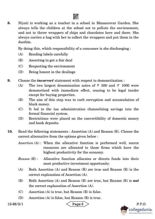 - (B) is correct as demonetization aimed at reducing corruption and black money.