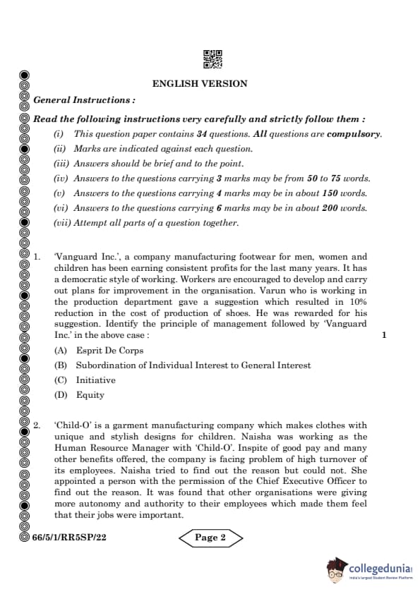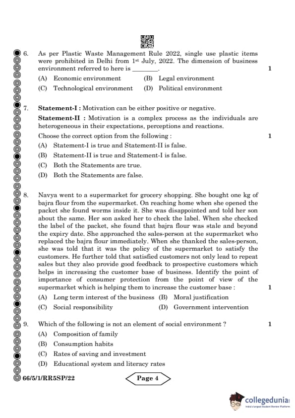 | CBSE Class 12 2024 Business Studies Question Paper with Answer Key | Check Solution |