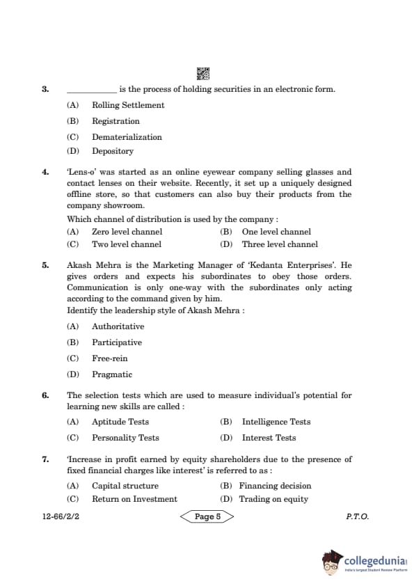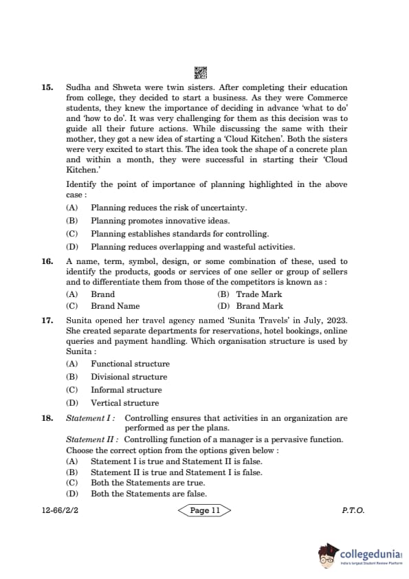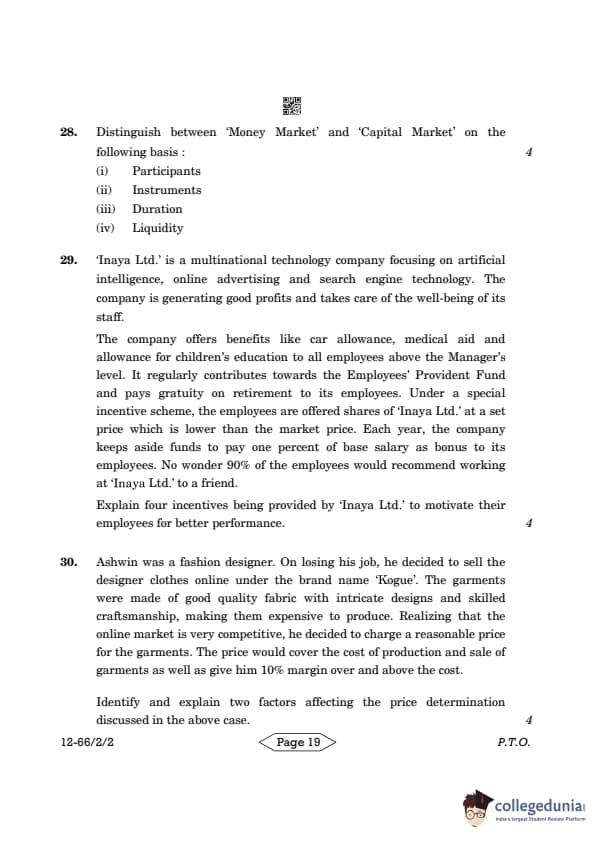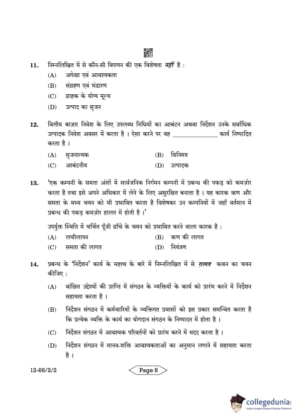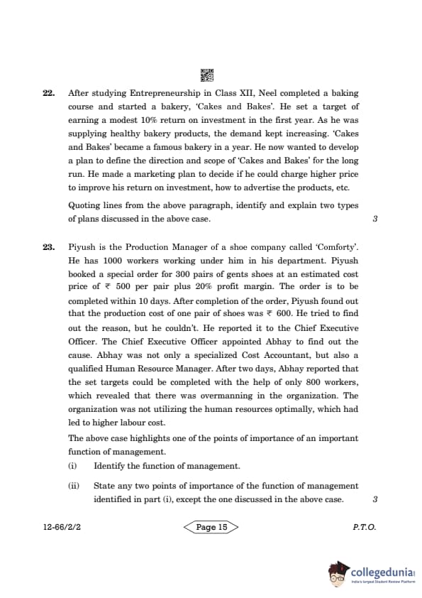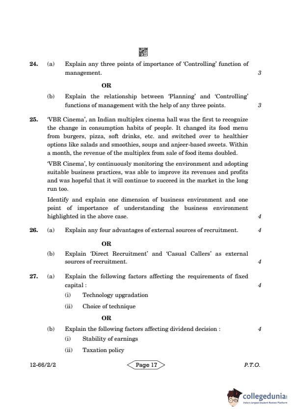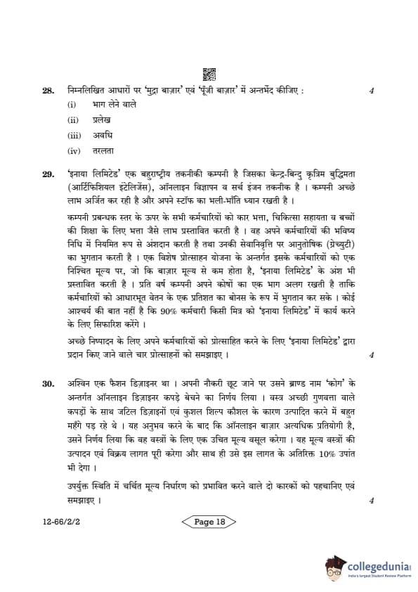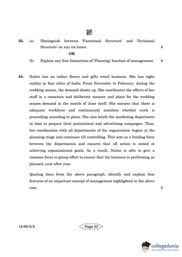 | CBSE Class 12 2024 Business Studies Question Paper with Answer Key | Check Solution |