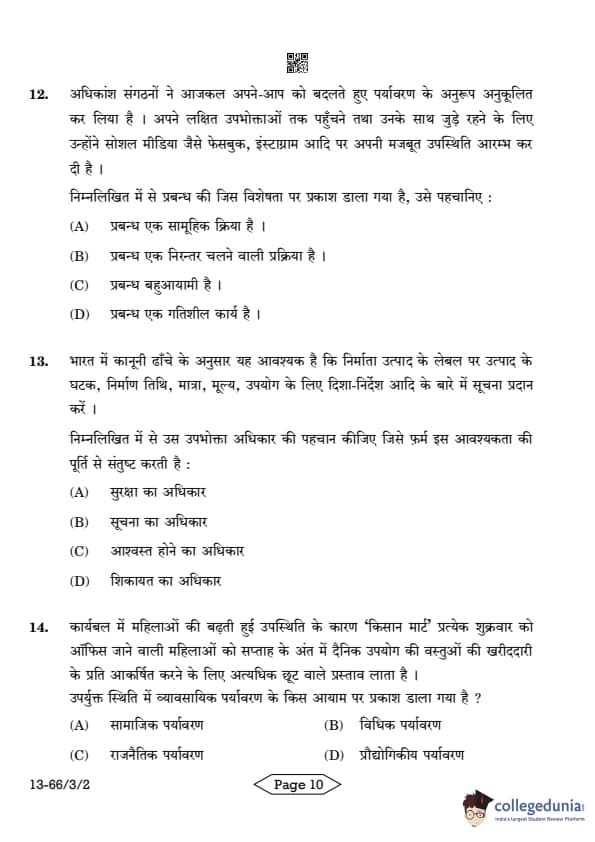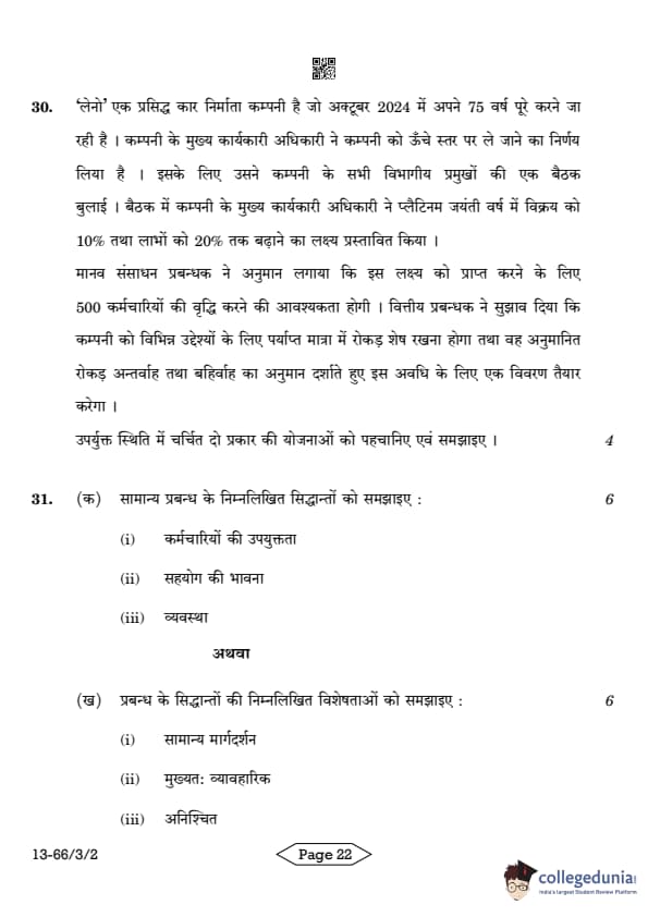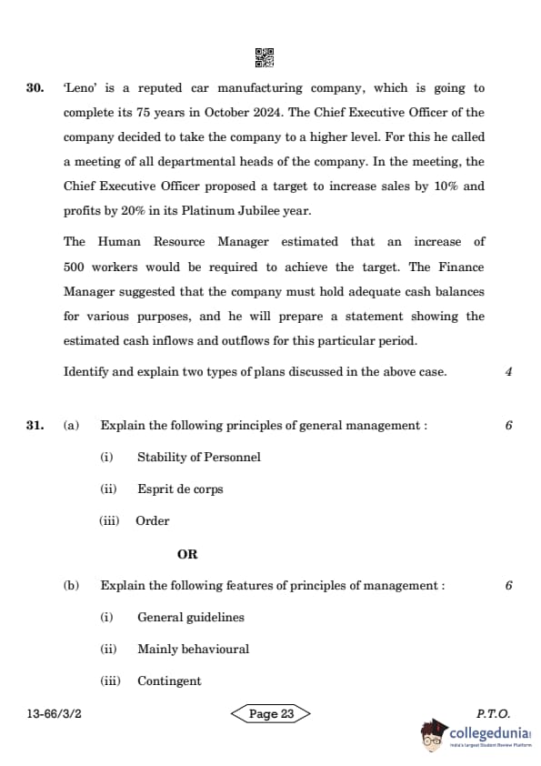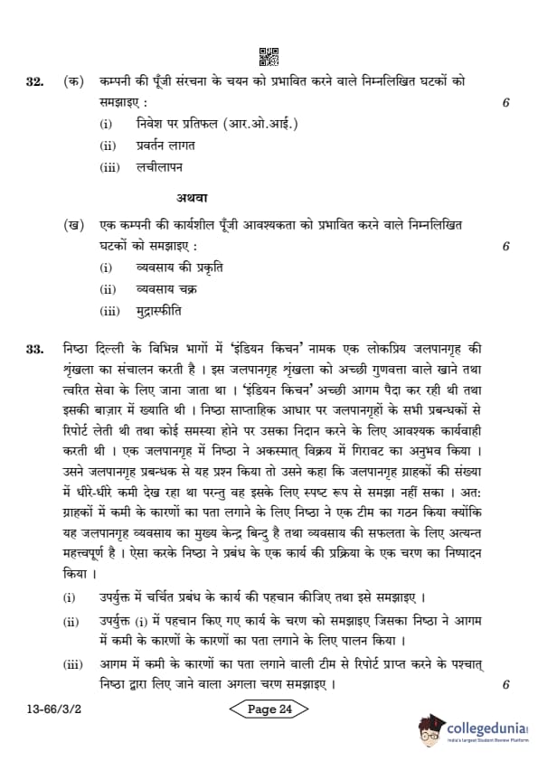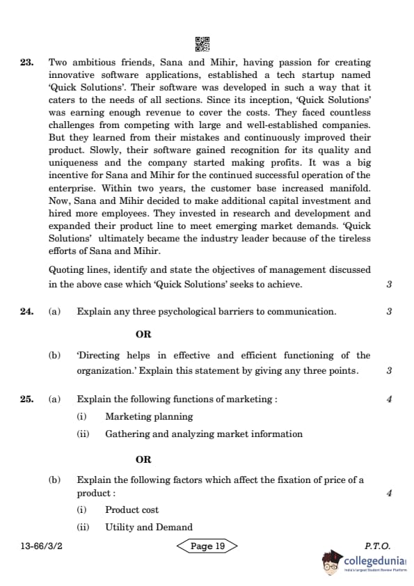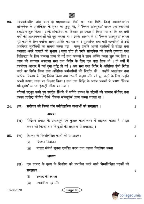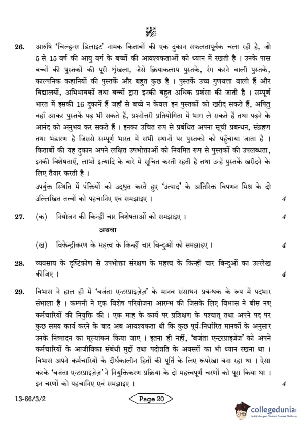 | CBSE Class 12 2024 Business Studies Question Paper with Answer Key | Check Solution |
