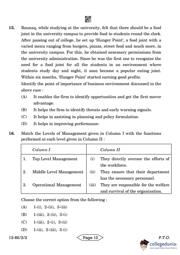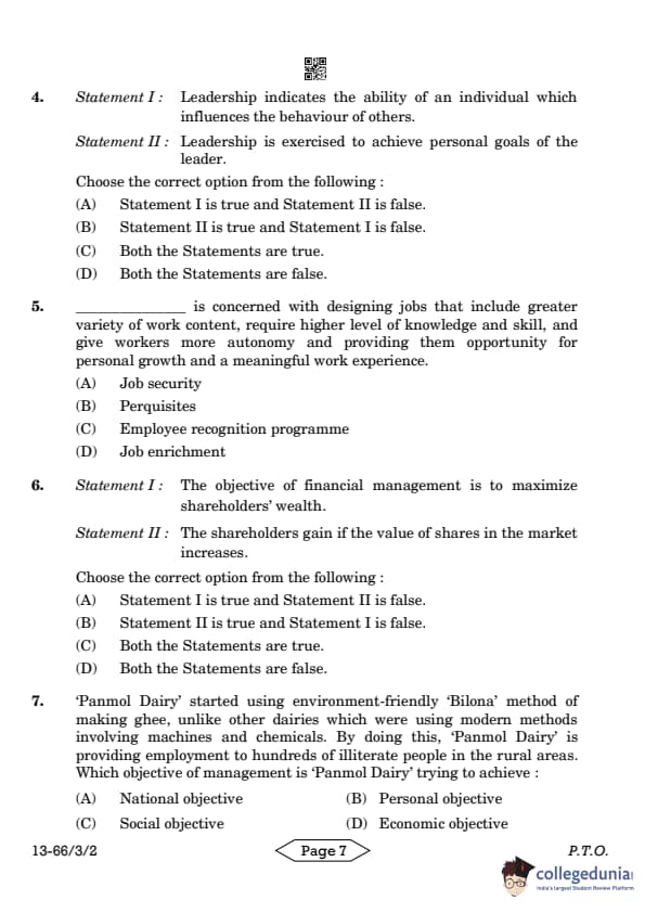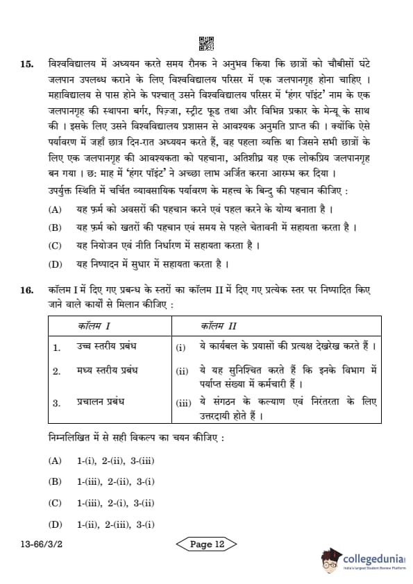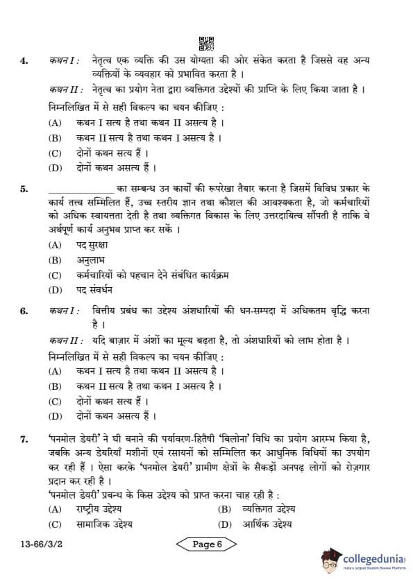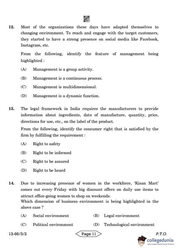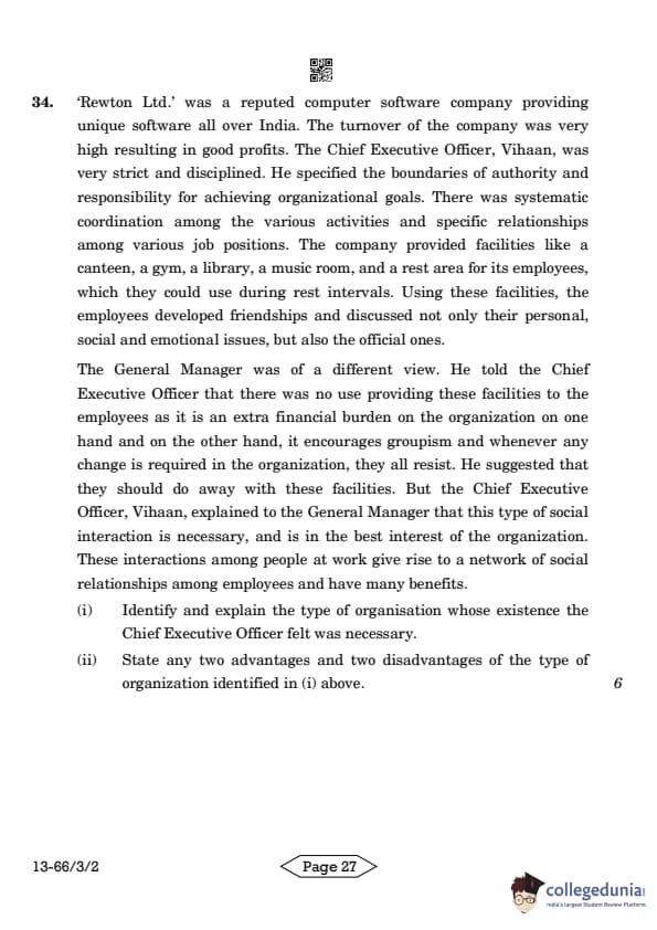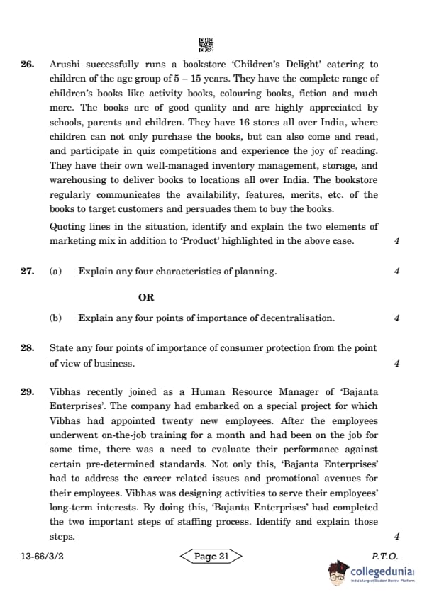 | CBSE Class 12 2024 Business Studies Question Paper with Answer Key | Check Solution |