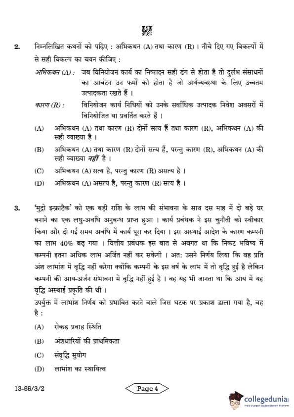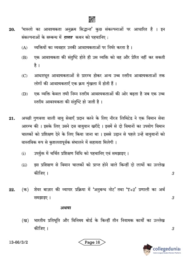 CBSE Class 12 Business Studies Question Paper 2024 PDF (Set 2- 66/3/2) is available for download here. CBSE conducted the Business Studies exam on March 27, 2024 from 10:30 AM to 1:30 PM. The total marks for the theory paper are 80. The question paper contains 20% MCQ-based questions, 40% competency-based questions, and 40% short and long answer type questions. Candidates can use the link below to download the CBSE Class 12 Business Studies Set 2 Question Paper with detailed solutions.