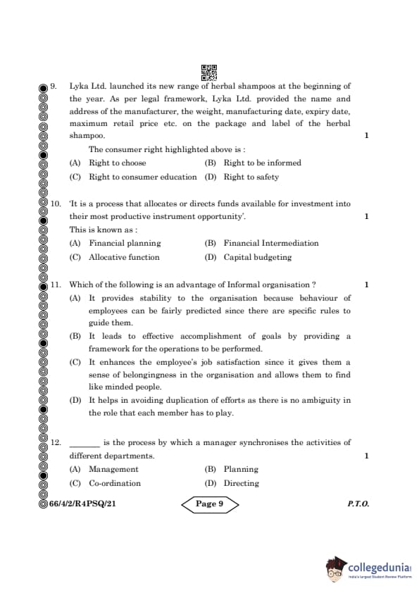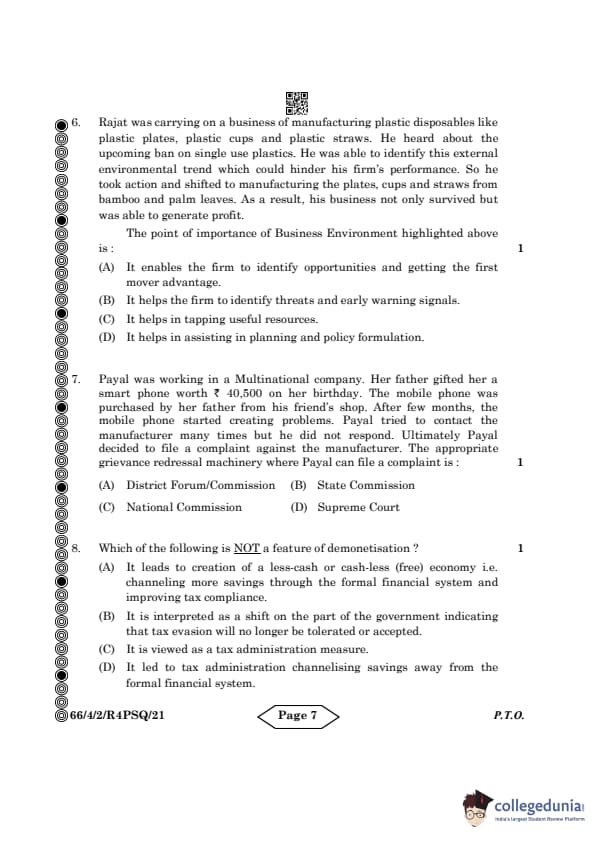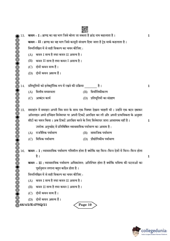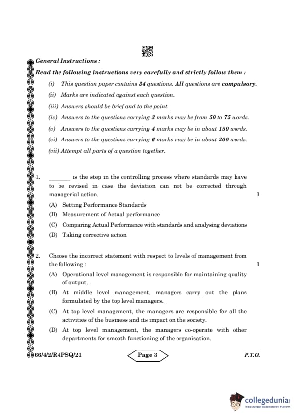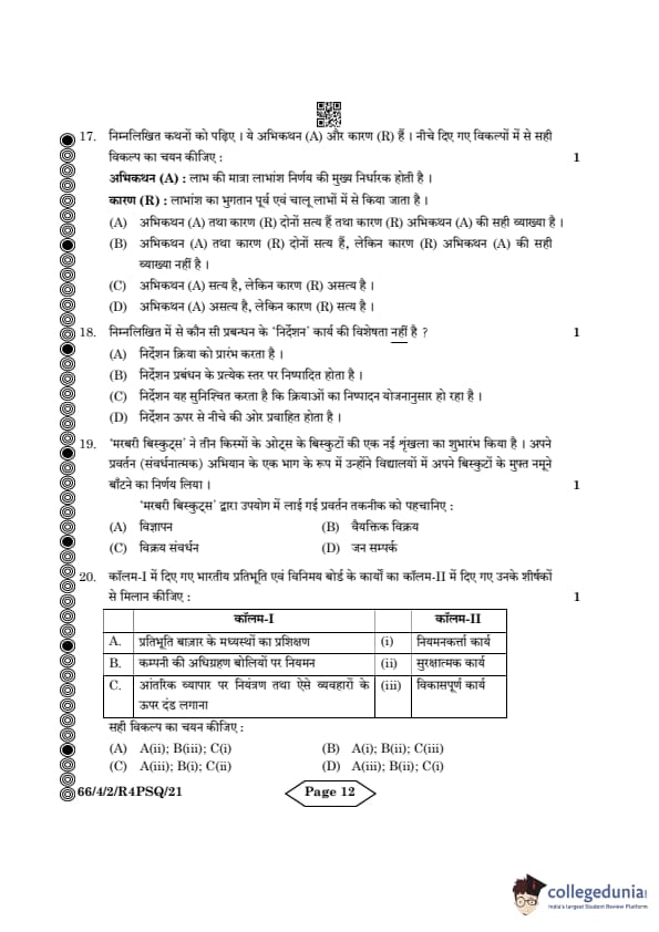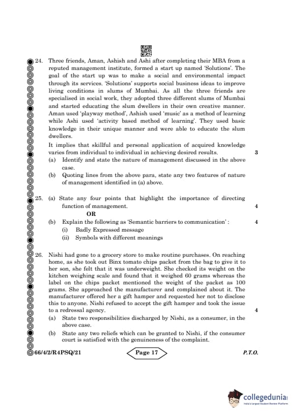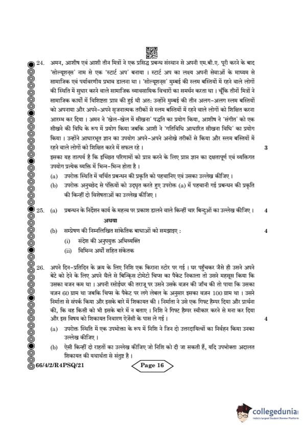 | CBSE Class 12 2024 Business Studies Question Paper with Answer Key | Check Solution |