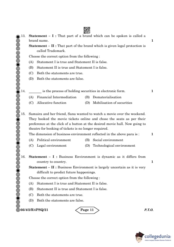 - Statement II: The business environment is uncertain because external changes like economic shifts or political decisions are often unpredictable. This makes the statement true.
