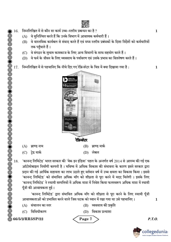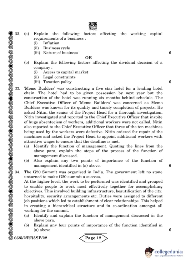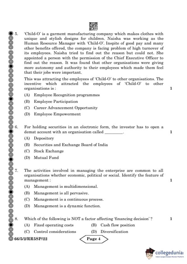 | CBSE Class 12 2024 Business Studies Question Paper with Answer Key | Check Solution |