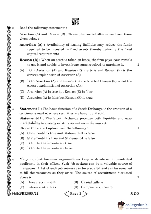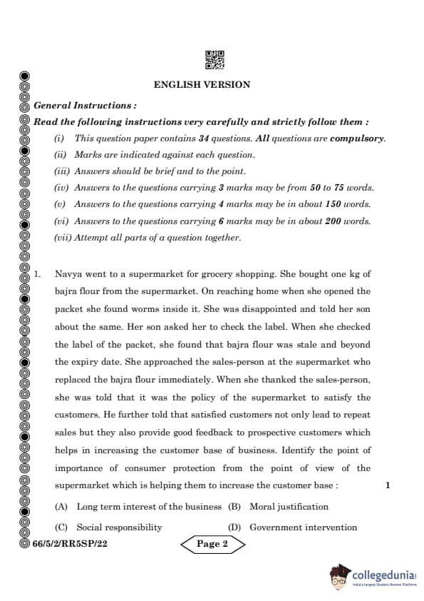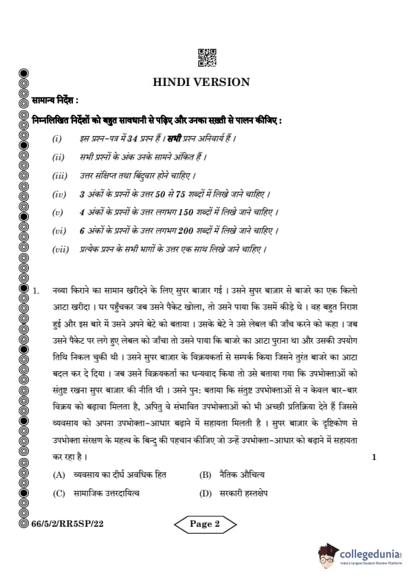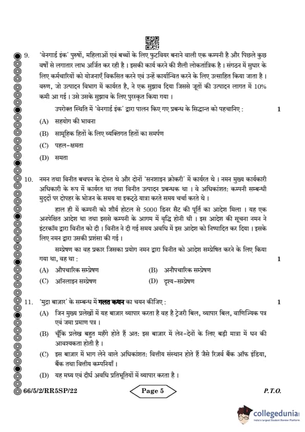 CBSE Class 12 Business Studies Question Paper 2024 PDF (Set 2- 66/5/2) is available for download here. CBSE conducted the Business Studies exam on March 27, 2024 from 10:30 AM to 1:30 PM. The total marks for the theory paper are 80. The question paper will contain 20% MCQ-based questions, 40% competency-based questions, and 40% short and long answer type questions.