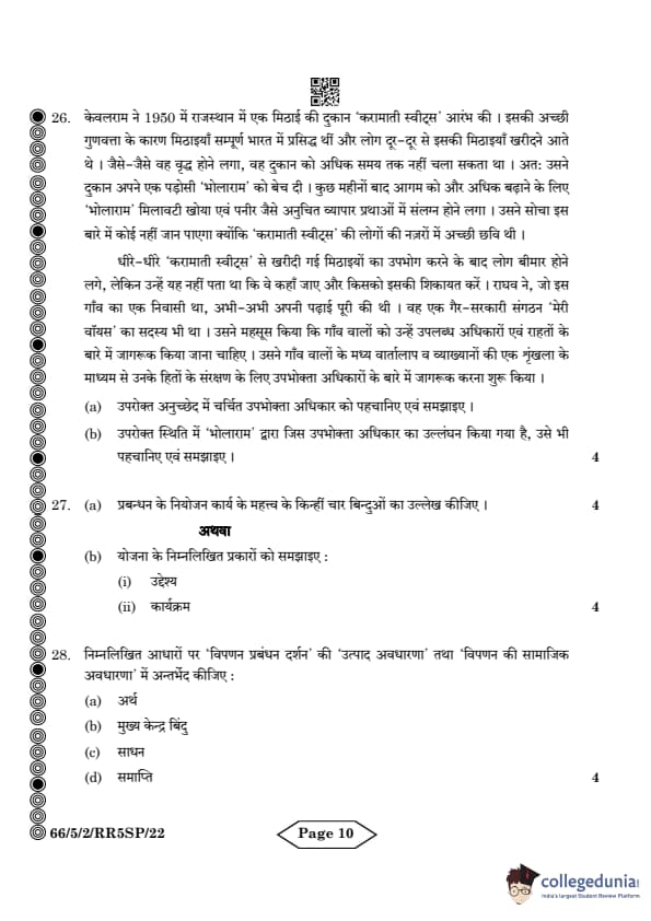 CBSE Class 12 Business Studies Question Paper 2024 (Set 2- 66/5/2) with Answer Key