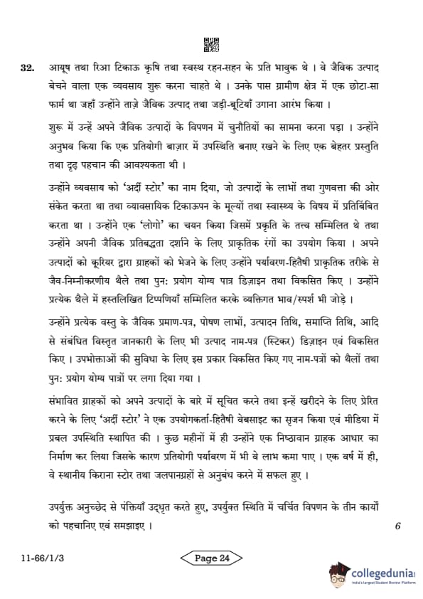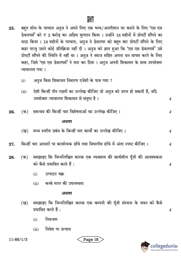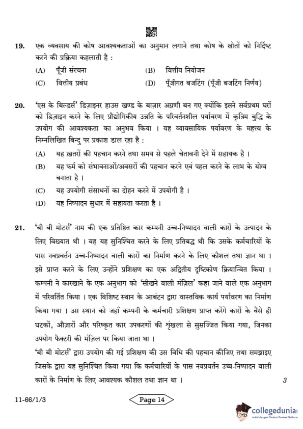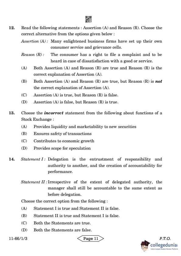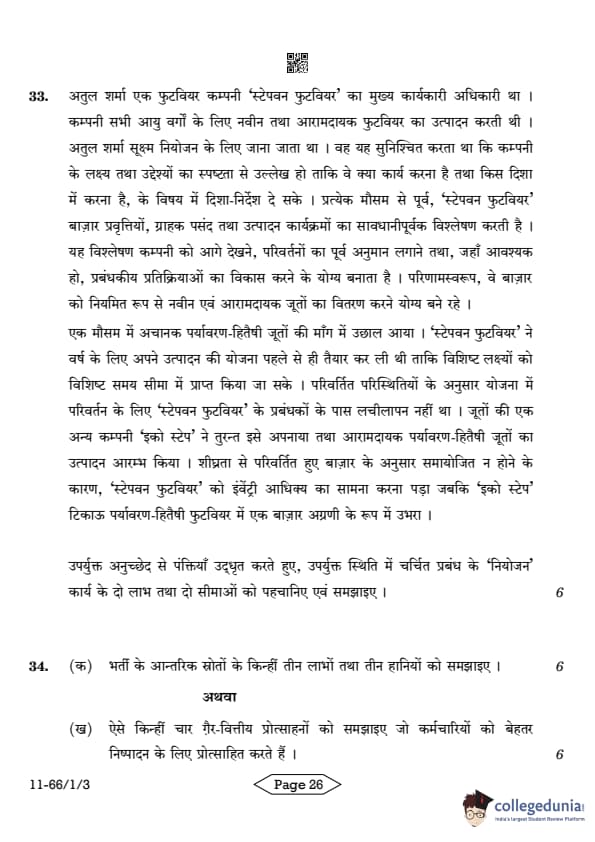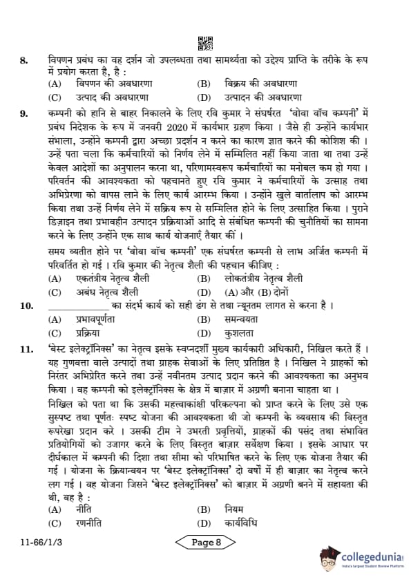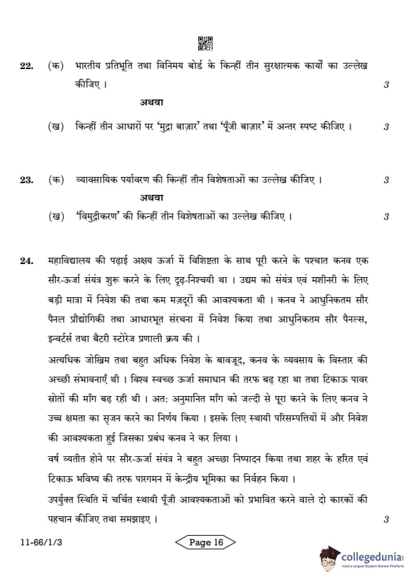 | CBSE Class 12 2024 Business Studies Question Paper with Answer Key | Check Solution |
