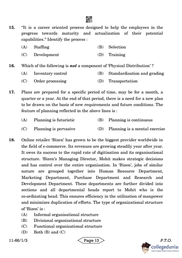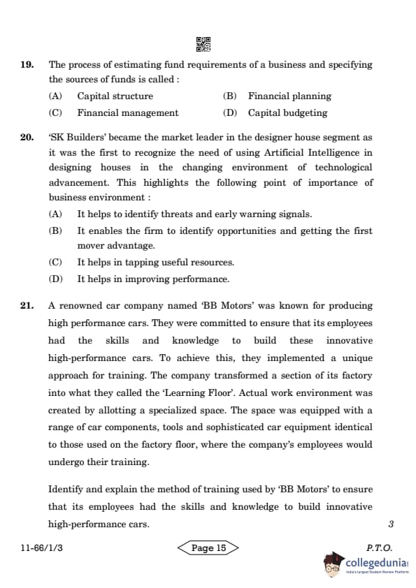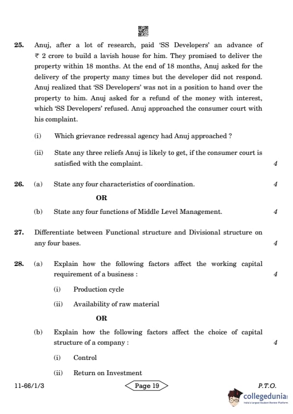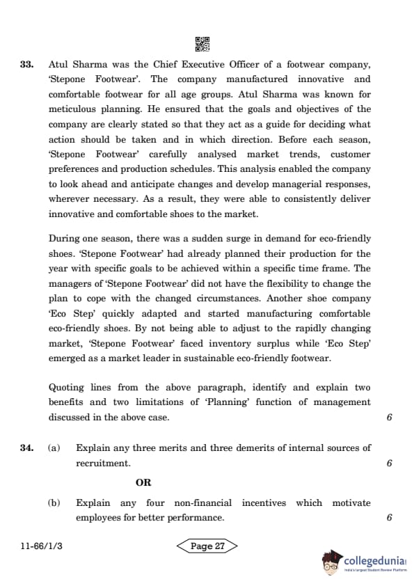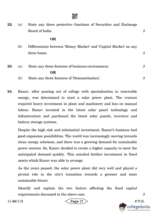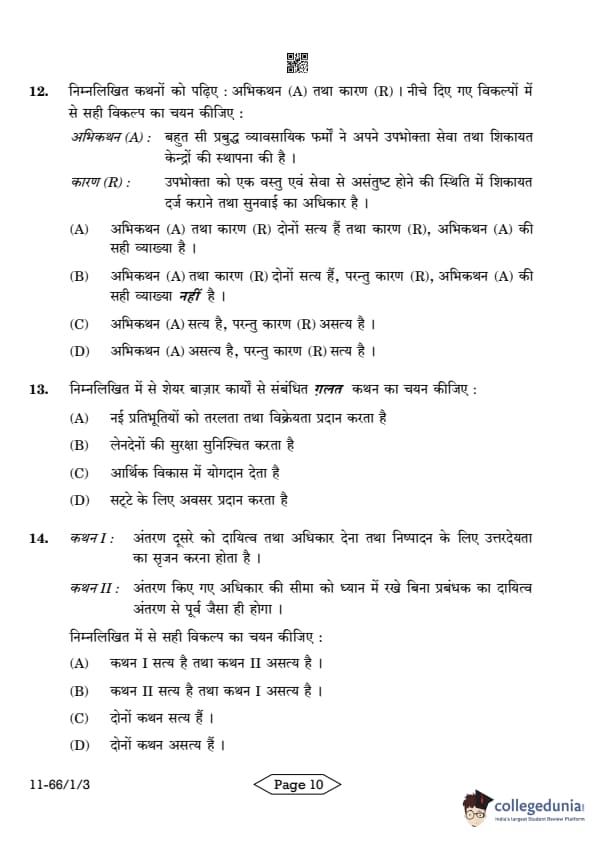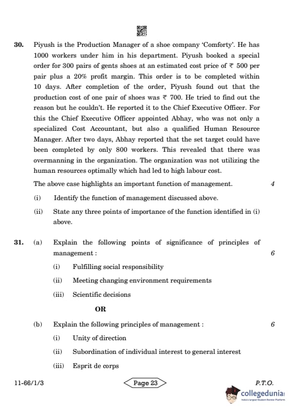 | CBSE Class 12 2024 Business Studies Question Paper with Answer Key | Check Solution |