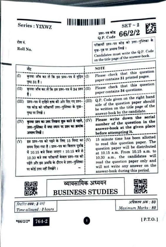 CBSE Class 12 Business Studies Set 2 (66/2/2) Question Paper 2025 with Solution PDF