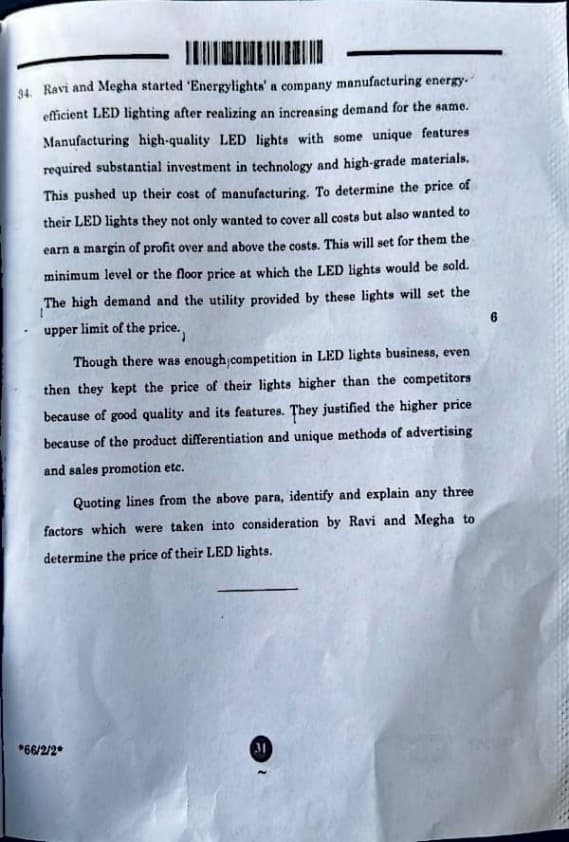 Ravi and Megha considered cost, market demand, and product quality while pricing their LED lights. These factors ensured their product remained competitive and profitable, while fulfilling customer satisfaction and meeting social responsibilities. Quick Tip: \textbf{Quick Tip:} Pricing depends on cost, customer demand, and competition—balance all three wisely.