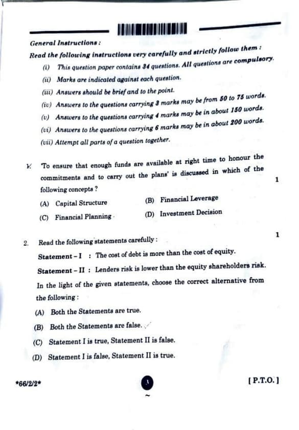 Statement II is true because lenders (debt holders) bear less risk than equity shareholders. They are paid before shareholders in the event of liquidation, and their returns (interest) are fixed. Quick Tip: Debt is cheaper but riskier for firms. Equity is costlier but gives flexibility.