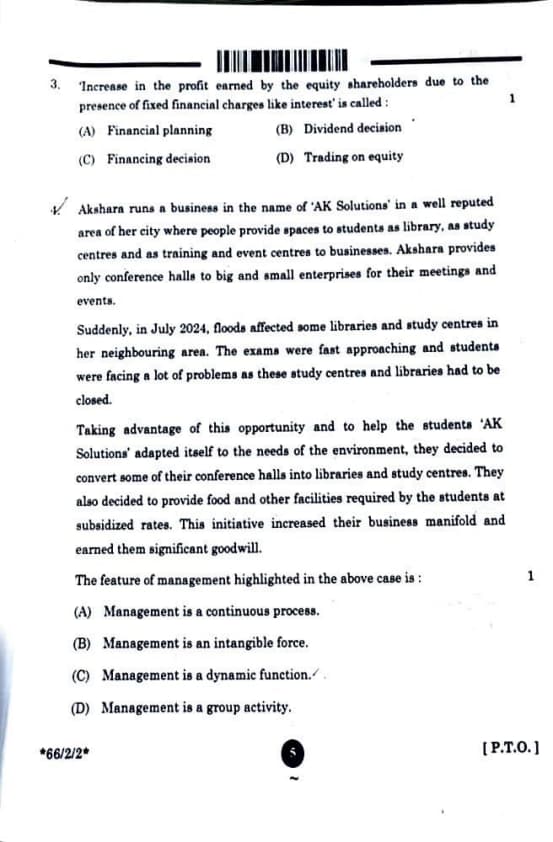 - (D) Management is a group activity — though management involves people, the emphasis in this case is on adaptation. Quick Tip: "Dynamic" means flexible and adaptable. Management = Evolving with the environment.