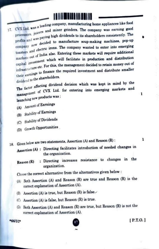 CVX Ltd. was a leading company, manufacturing home appliances like food processors, juicers and mixer grinders. The company was earning good profits and was paying high dividends to its shareholders consistently. The company now decided to manufacture soup-making machines, pop-up toasters and electric irons. The company wanted to enter into emerging markets out of India also. Entering these markets will require additional capital investment which will facilitate in production and distribution infrastructure etc. For this, the management decided to retain money out of their earnings to finance the required investment and distribute smaller dividend to the shareholders.