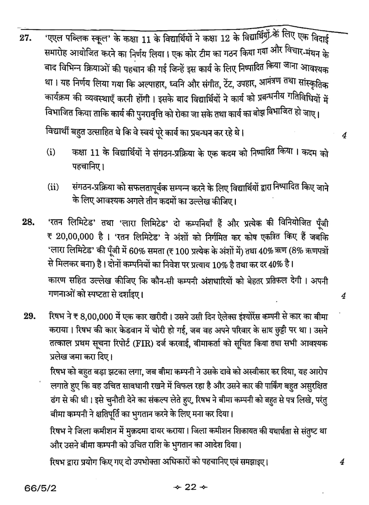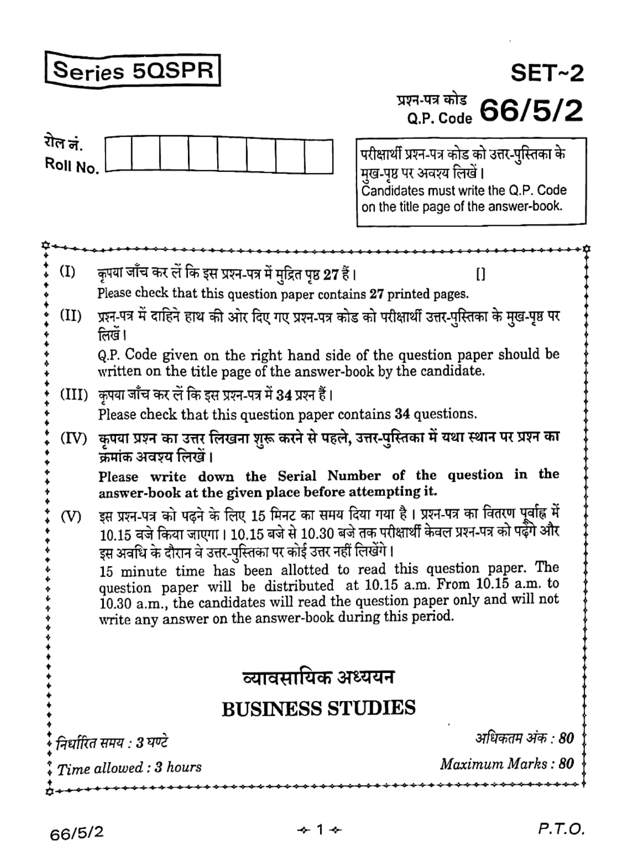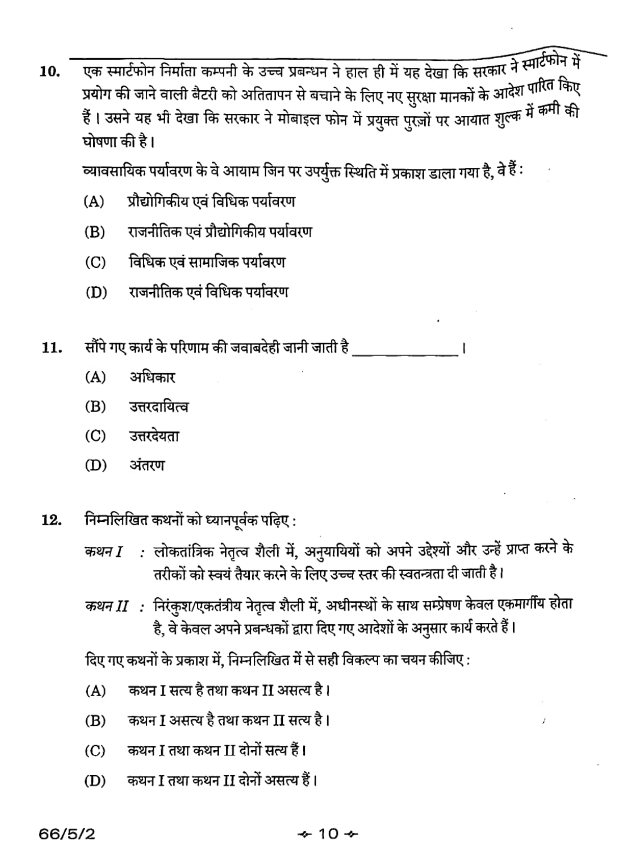 CBSE Class 12 2026 Business Studies Set 2- 66/5/2 Question Paper with Solution PDF