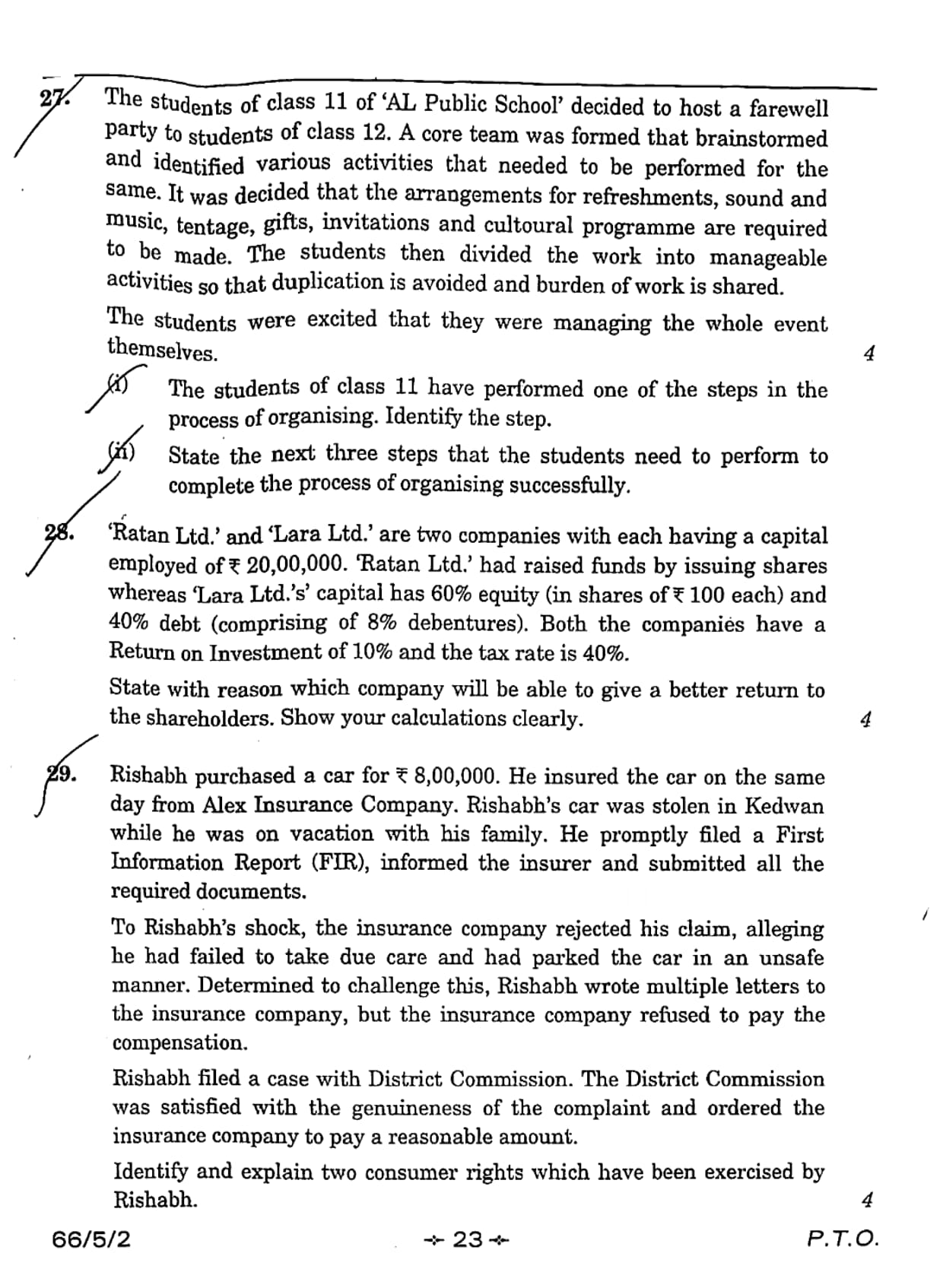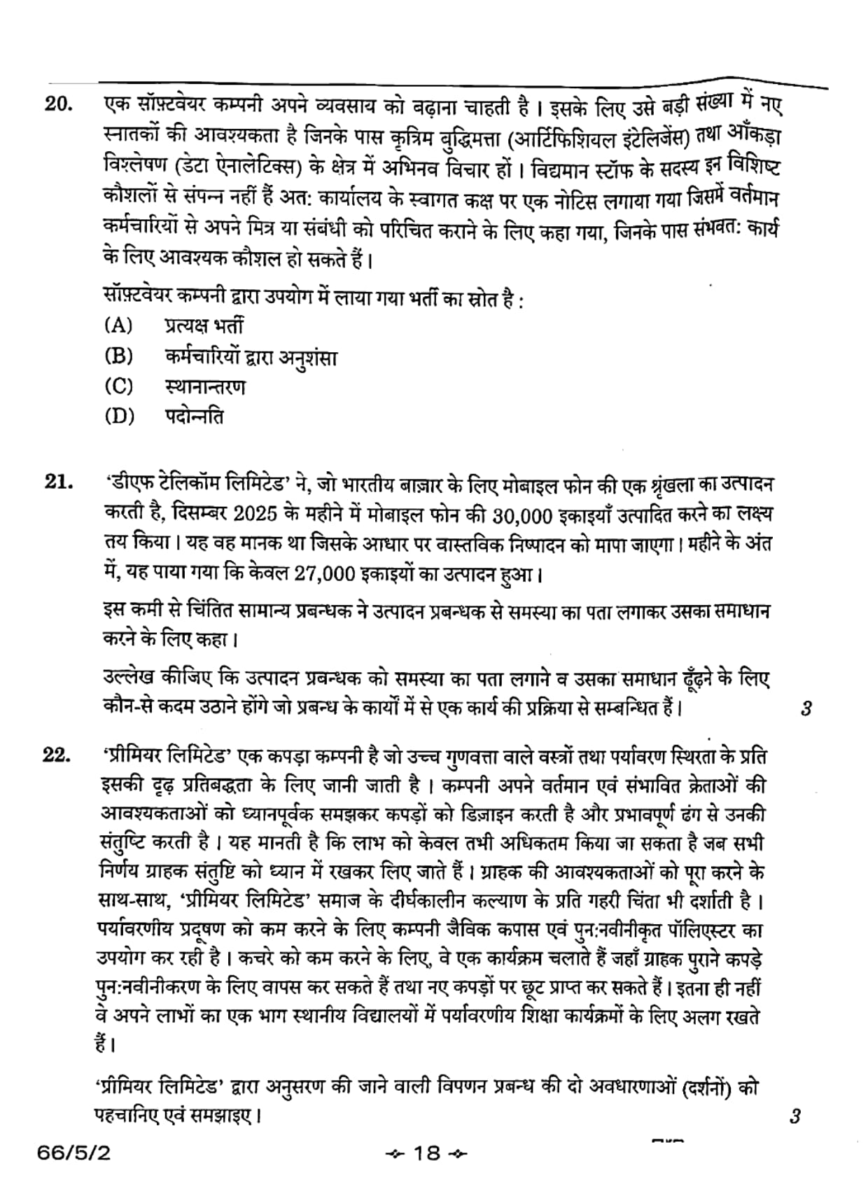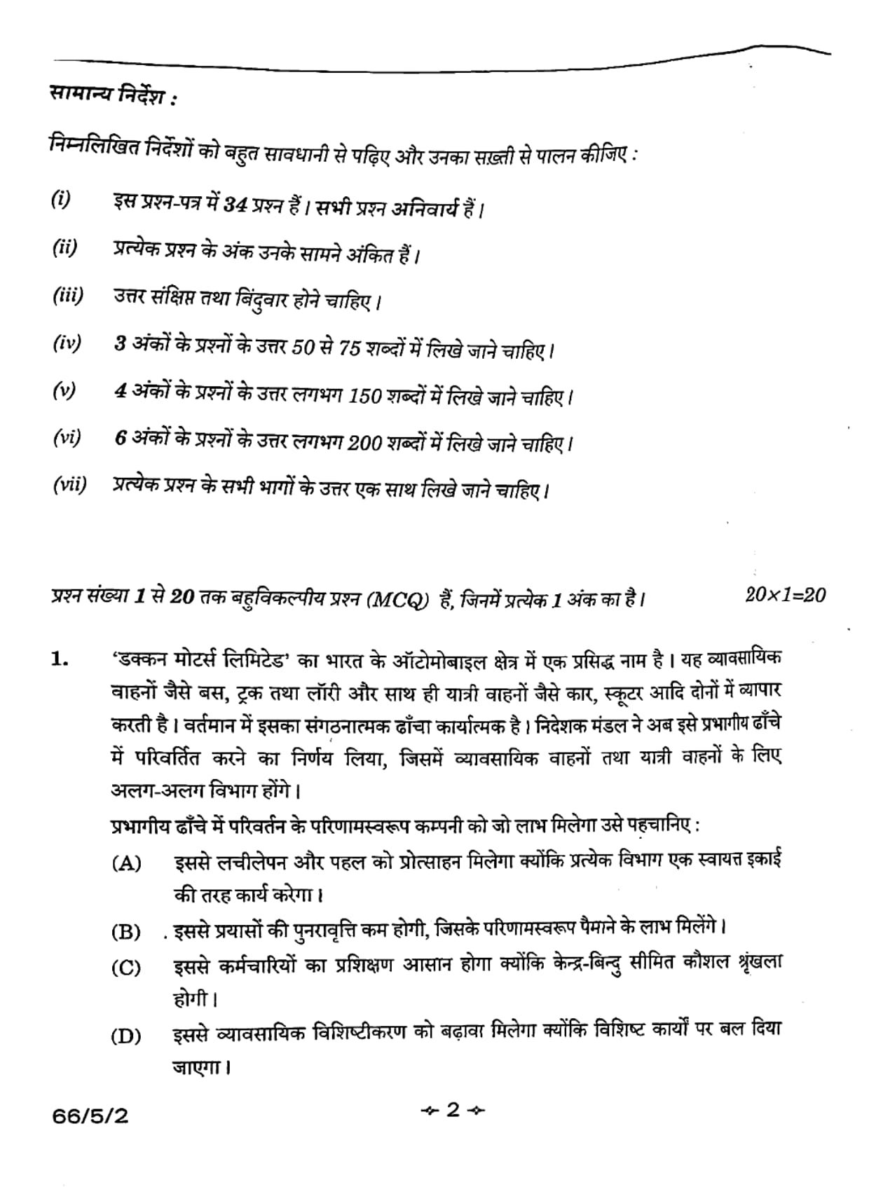 CBSE Class 12 2026 Business Studies Set 2- 66/5/2 Question Paper with Solution PDF