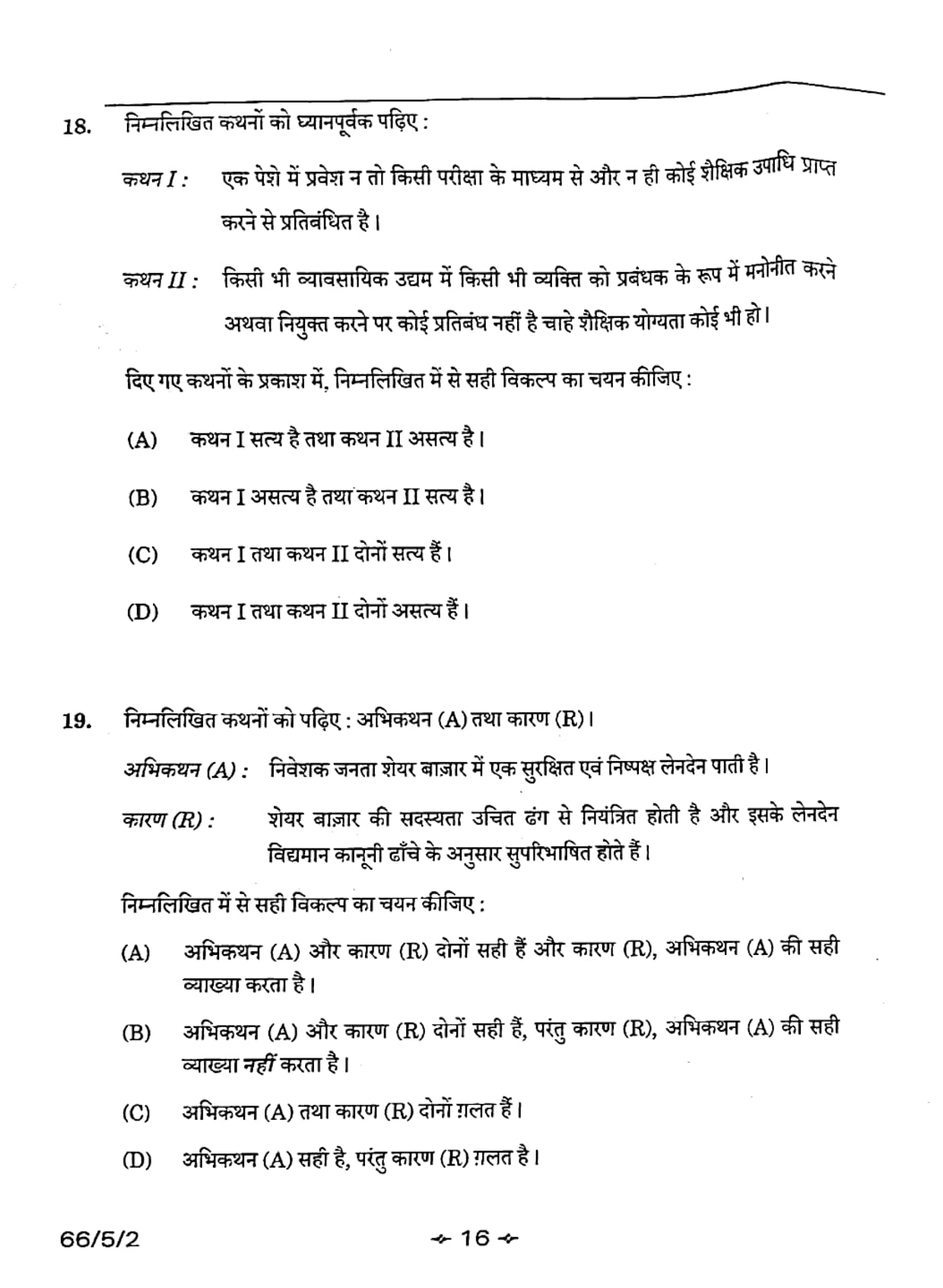 Assertion (A) : The investing public gets a safe and fair deal on the stock market.