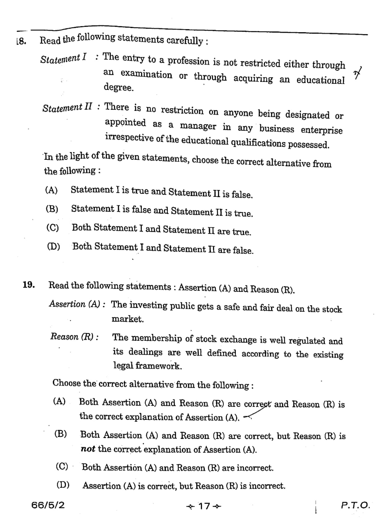 Statement I : The entry to a profession is not restricted either through an examination or through acquiring an educational degree.