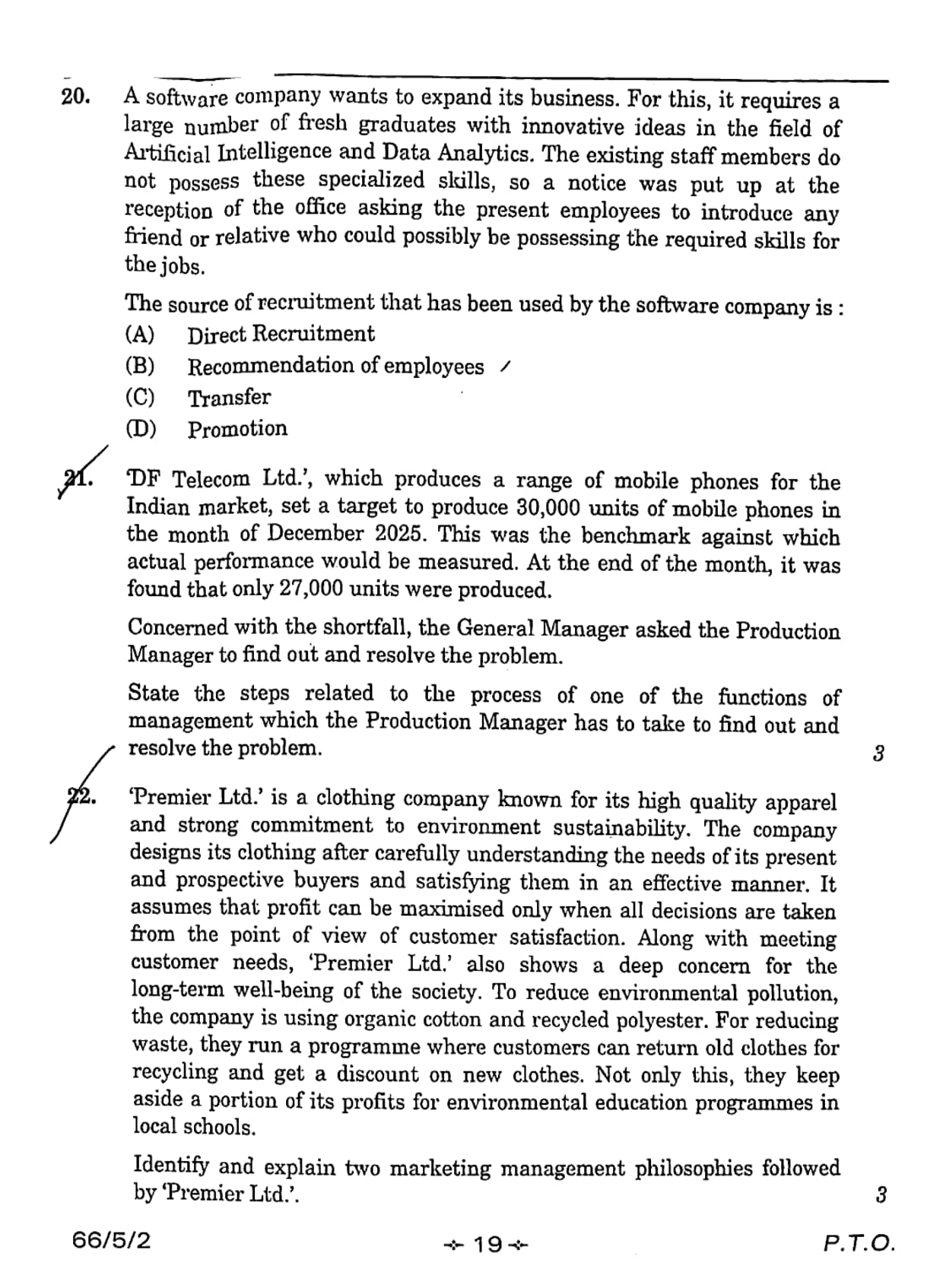 ‘Premier Ltd.’ is a clothing company known for its high quality apparel and strong commitment to environment sustainability. The company designs its clothing after carefully understanding the needs of its present and prospective buyers and satisfying them in an effective manner. It assumes that profit can be maximised only when all decisions are taken from the point of view of customer satisfaction. Along with meeting customer needs, ‘Premier Ltd.’ also shows a deep concern for the long-term well-being of the society. To reduce environmental pollution, the company is using organic cotton and recycled polyester. For reducing waste, they run a programme where customers can return old clothes for recycling and get a discount on new clothes. Not only this, they keep aside a portion of its profits for environmental education programmes in local schools. Identify and explain two marketing management philosophies followed by ‘Premier Ltd.’.