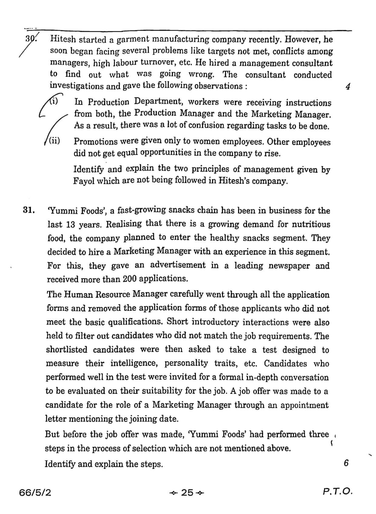 (i) In Production Department, workers were receiving instructions from both, the Production Manager and the Marketing Manager. As a result, there was a lot of confusion regarding tasks to be done.