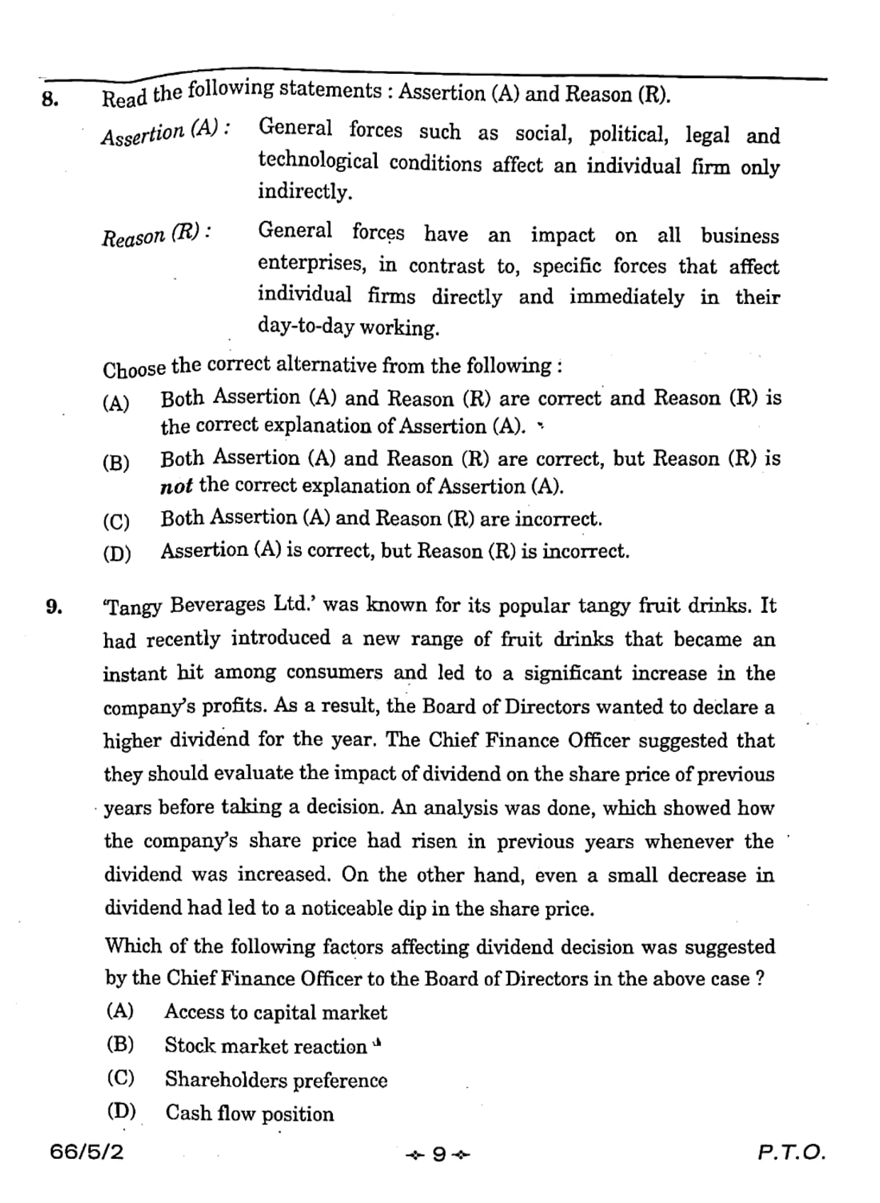 Assertion (A) : General forces such as social, political, legal and technological conditions affect an individual firm only indirectly.
