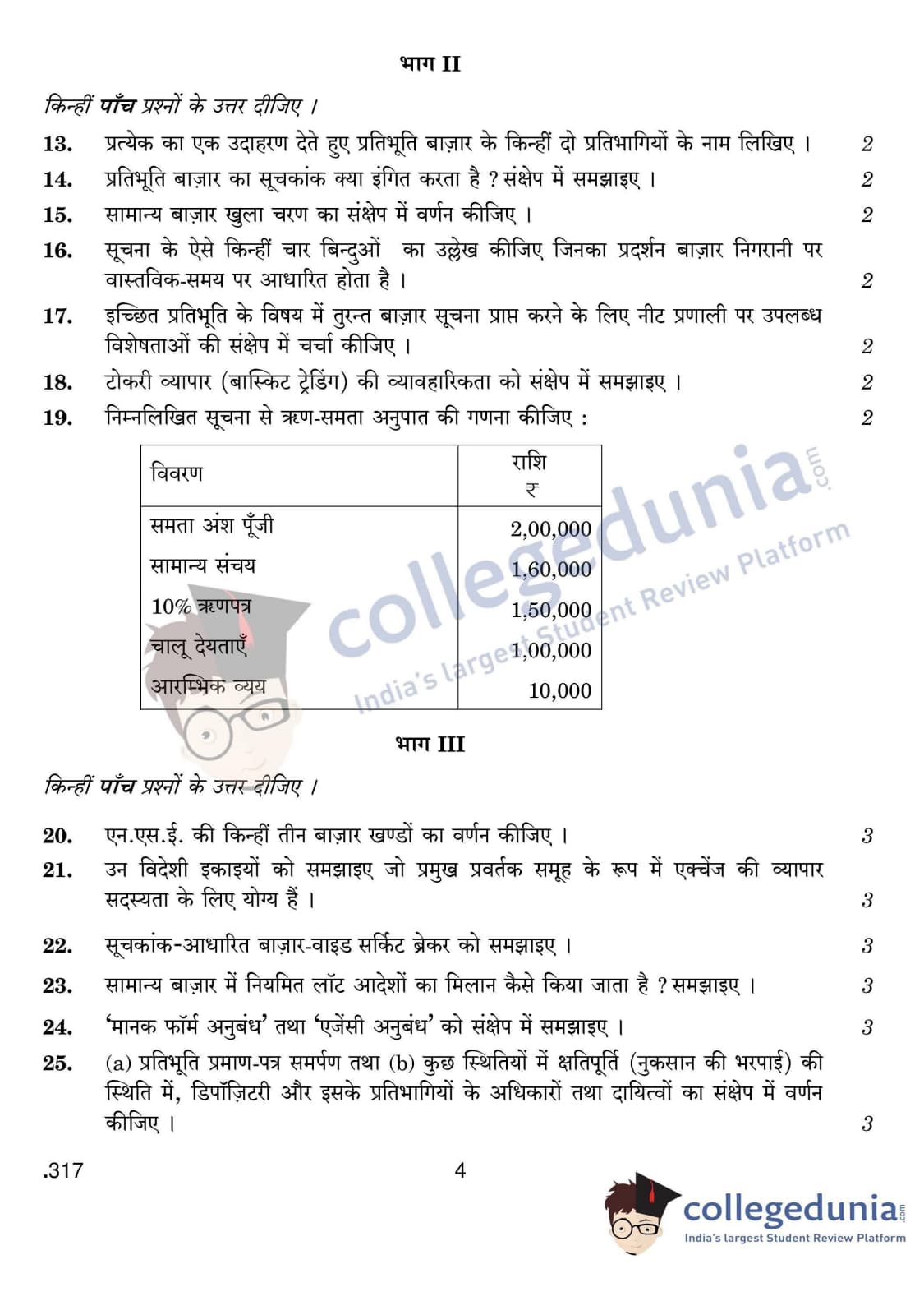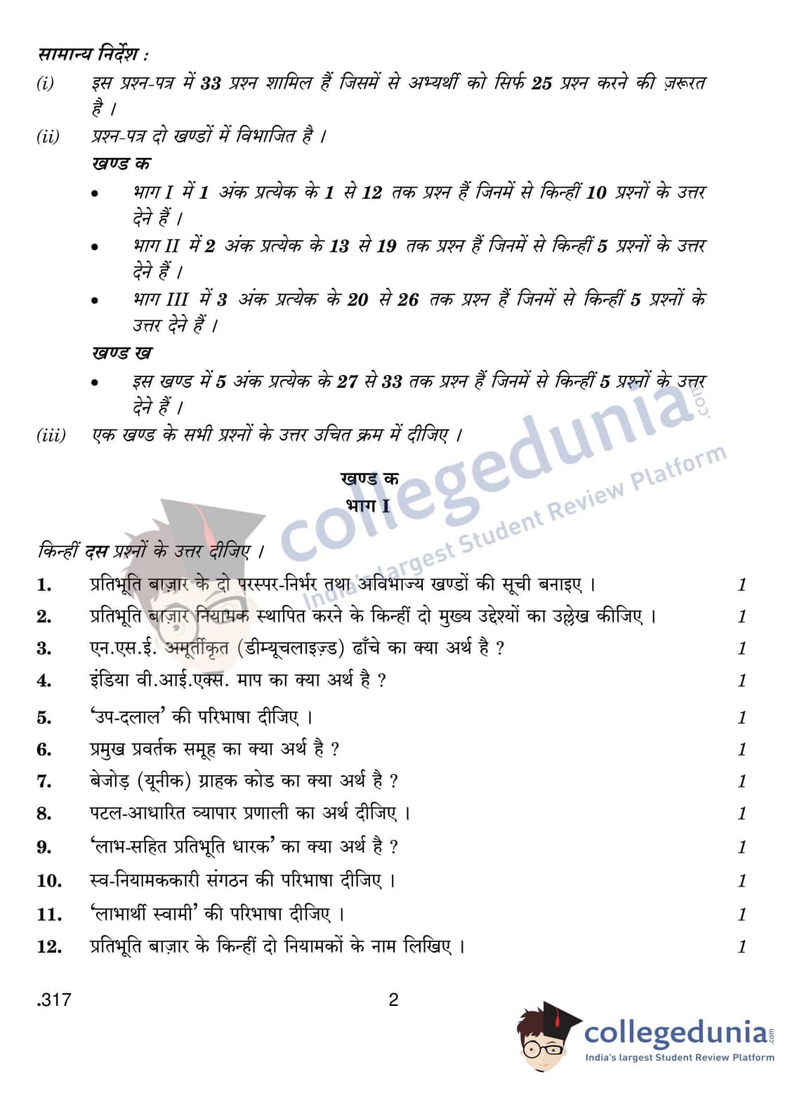CBSE Class 12 Capital Market Operations Question Paper 2020 with Answer Key Set 4 is available for download. The exam was conducted by the Central Board of Secondary Education on February 29, 2020 in the Morning Session 10:30 AM to 1:30 PM. The medium of paper was English & Hindi. The question paper comprised a total of 33 questions divided among 2 sections.