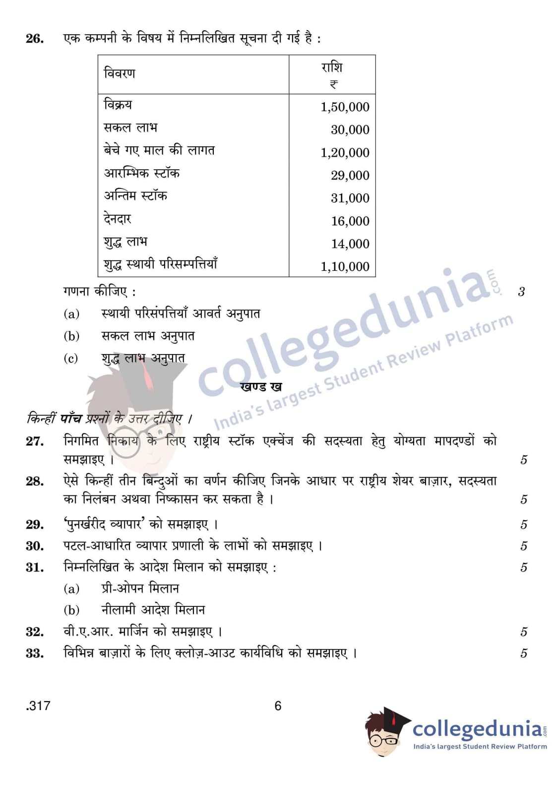 CBSE Class 12 Capital Market Operations Question Paper 2020 with Answer Key (February 29)
