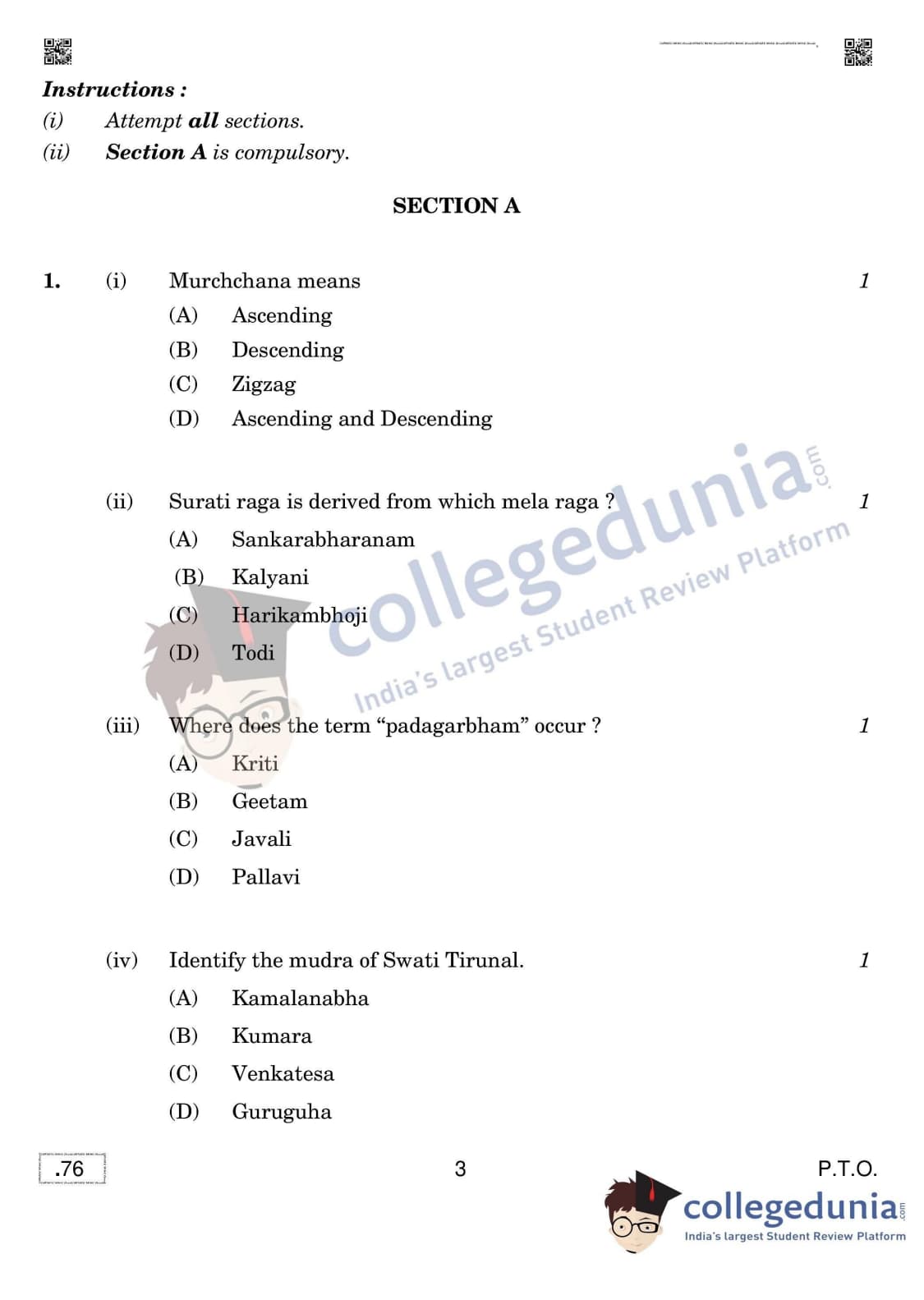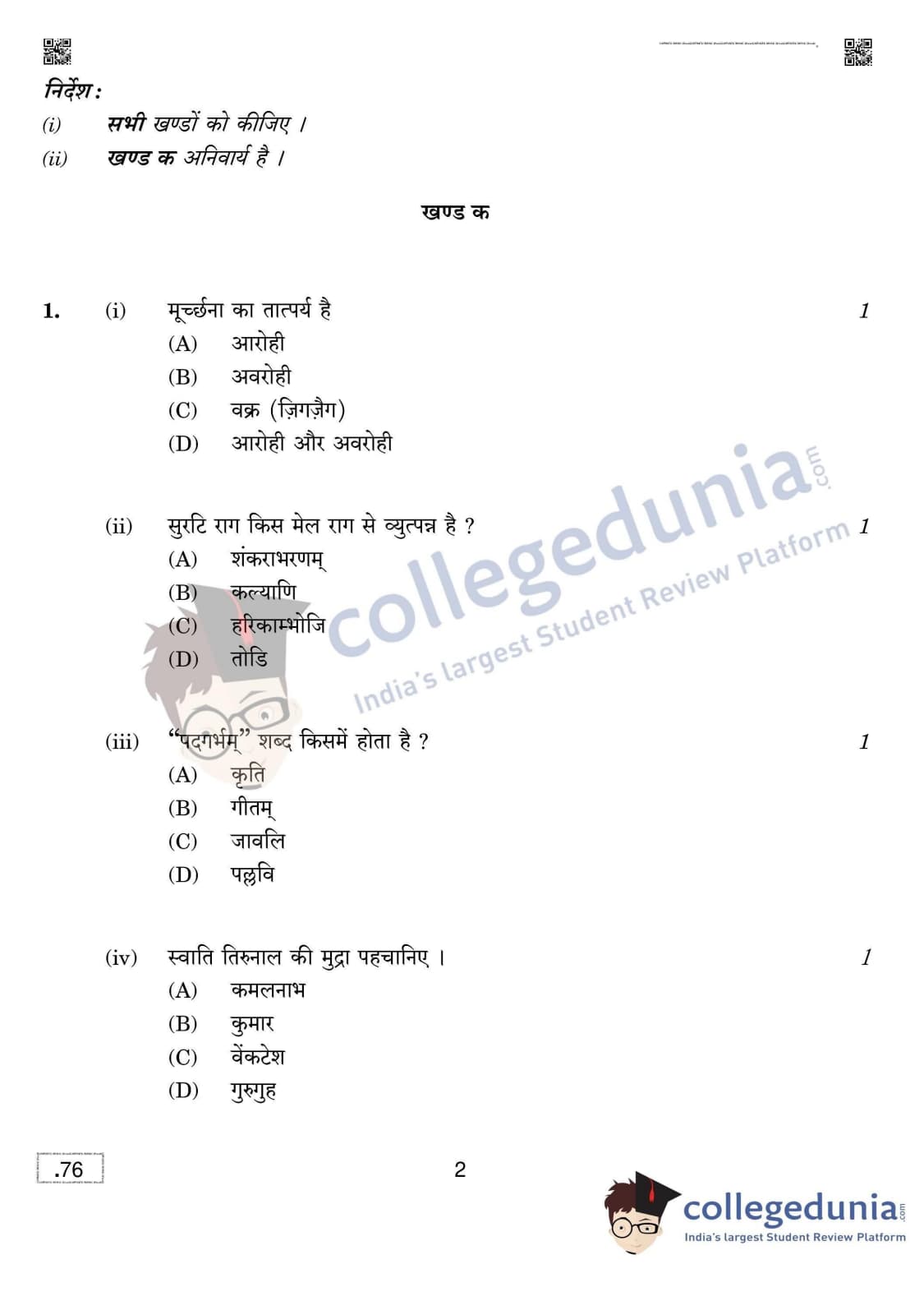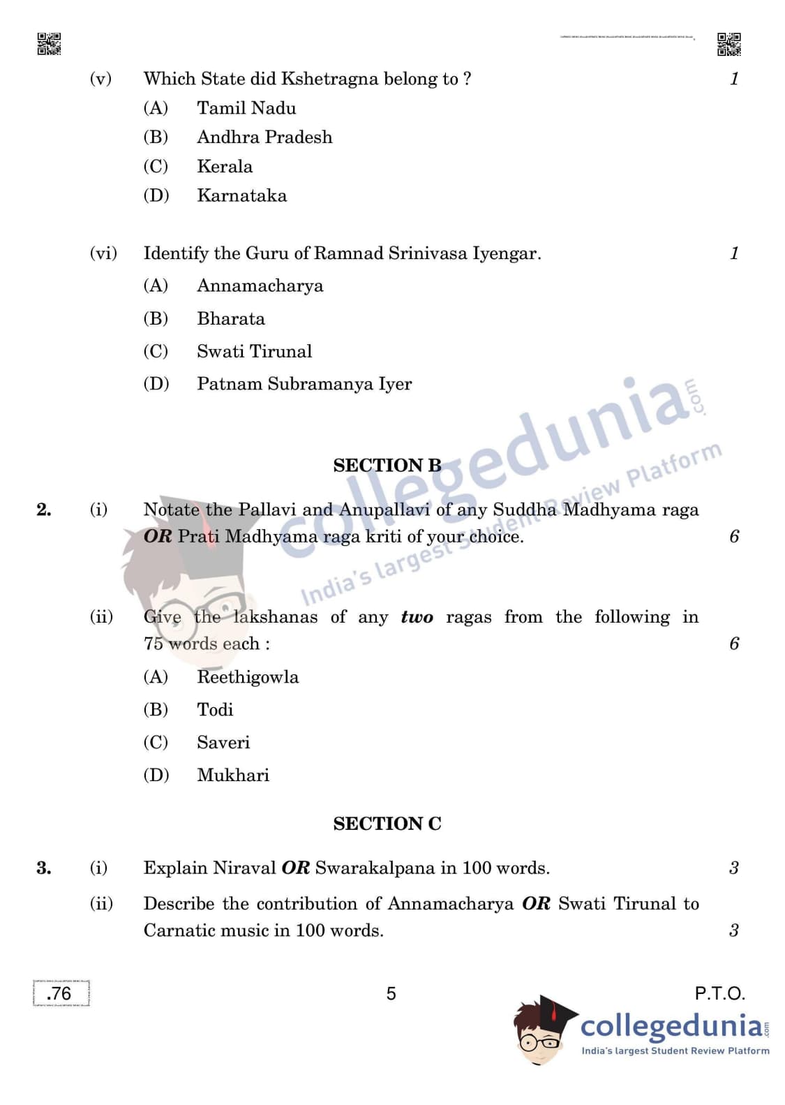 CBSE Class 12 Carnatic Music (Vocal) Question Paper 2020 with Answer Key (March 16)